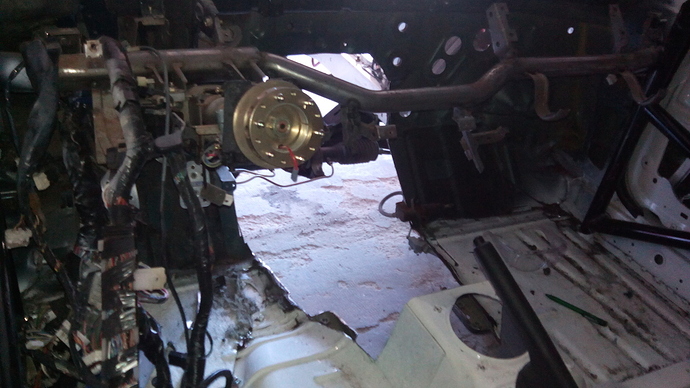 Frontal ya cortado para soldarle las barras. El túnel de la transmisión también se va a hacer artesanal, ni por asomo entra la caja de BMW! Además, el cableado va a estar todo en el interior, así como la batería, para dejar lo más limpio posible el vano del motor.