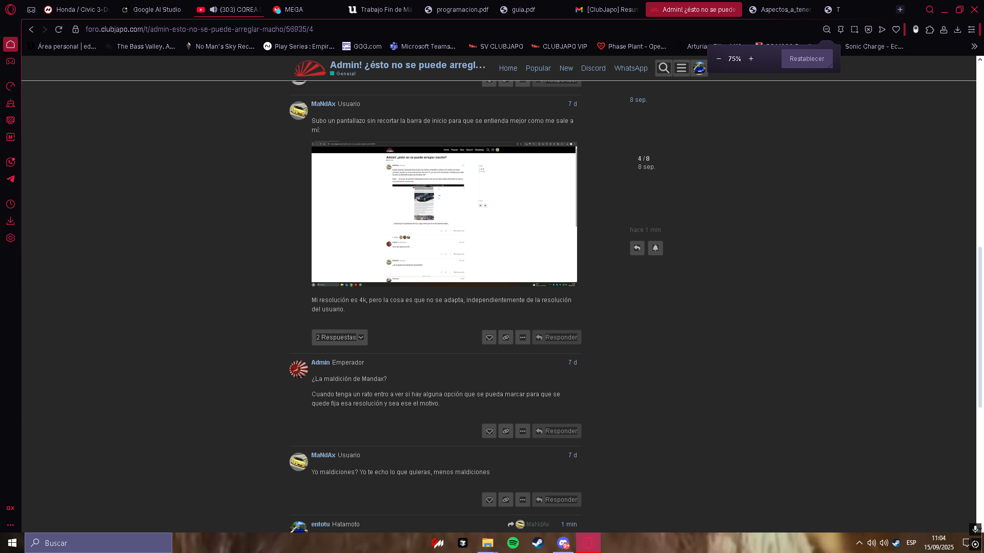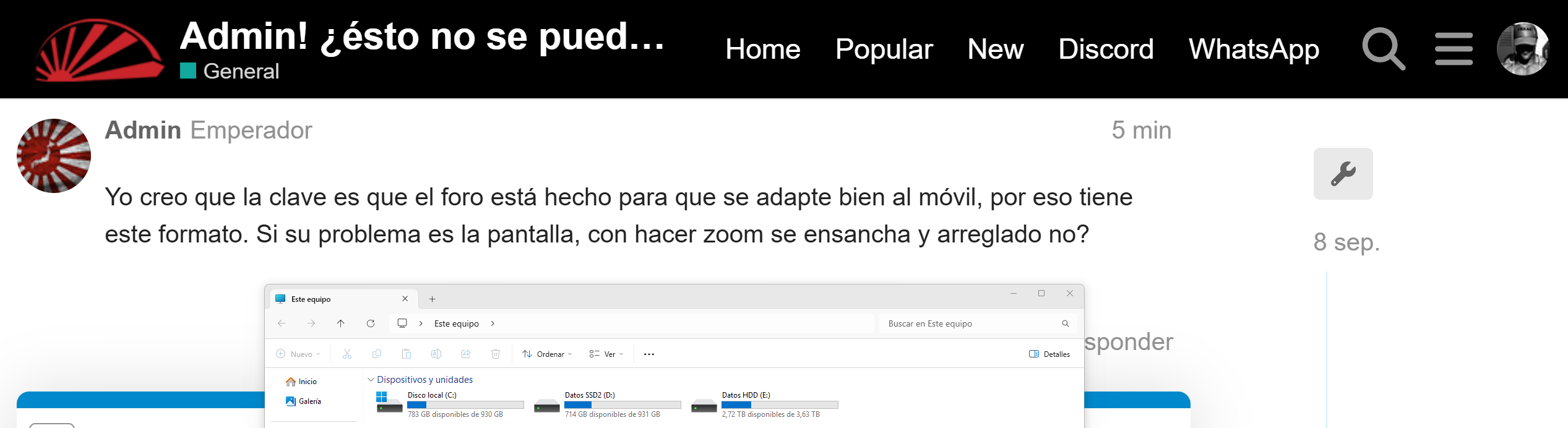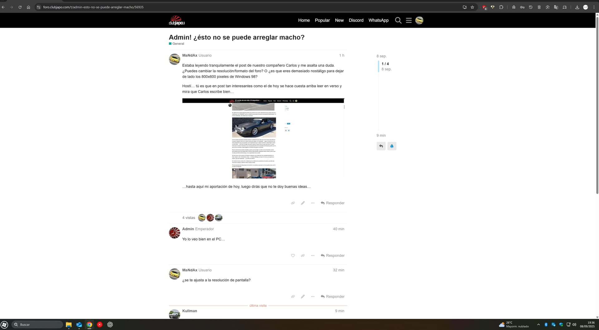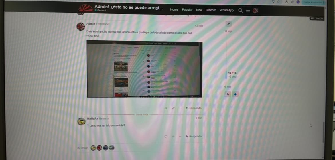 No estoy entendiendo nada. ¿Por qué achacáis de lo que se queja Mandax a un problema? que si navegador, zoom, etc… Yo lo veo igual que él y en las imágenes que pasais, creo que también lo veis igual que él y que yo. No estáis teniendo en cuenta que tiene un monitor 4K. Los márgenes blancos que veis a los lados, en su pantalla son mucho mas grandes. Mis monitores son 2K y tambien tengo bastante espacio en blanco, aunque no me molesta este estilo “movil” mientras lo pueda seguir leyendo bien.
