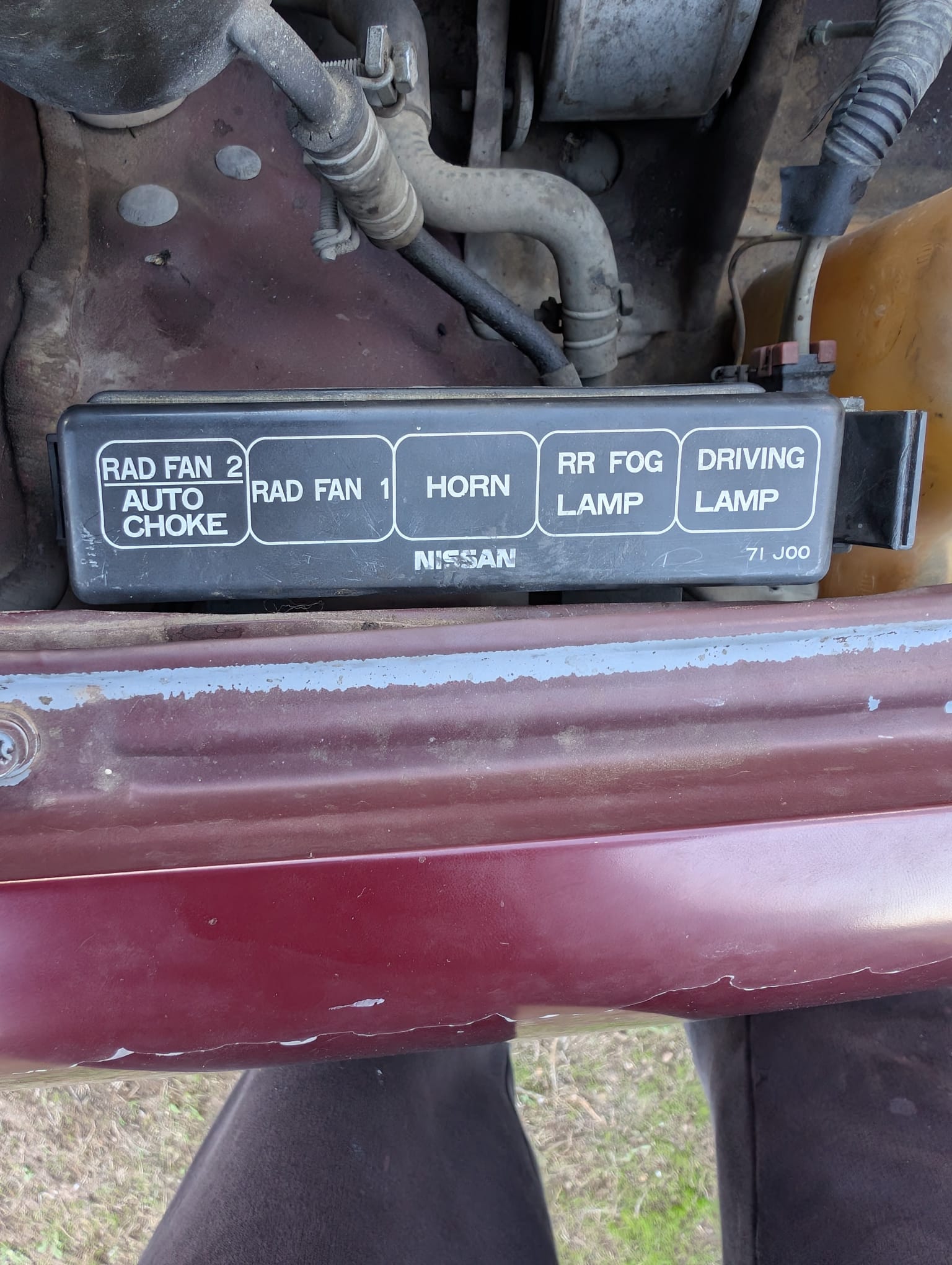 He estado revisando y, en primer lugar, adjunté la foto de la caja de relés donde creo que se encuentra el del antiniebla trasero. Sin embargo, junto a la batería he visto el relé marcado como “FR FOG LAMP”, que entiendo corresponde al antiniebla delantero.