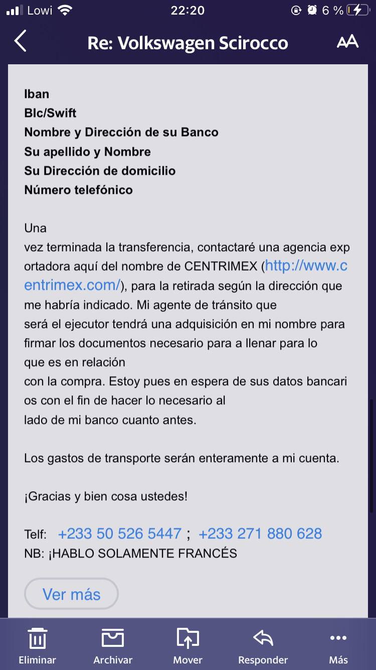 ME HA CONTACTADO ESTA PERSONA PARA COMPRARME EL COCHE POR AUTOSCOUT24 Y ME HUELE MAL, ALGUIEN TIENE ALGUNA EXPERIENCIA PARECIDA??