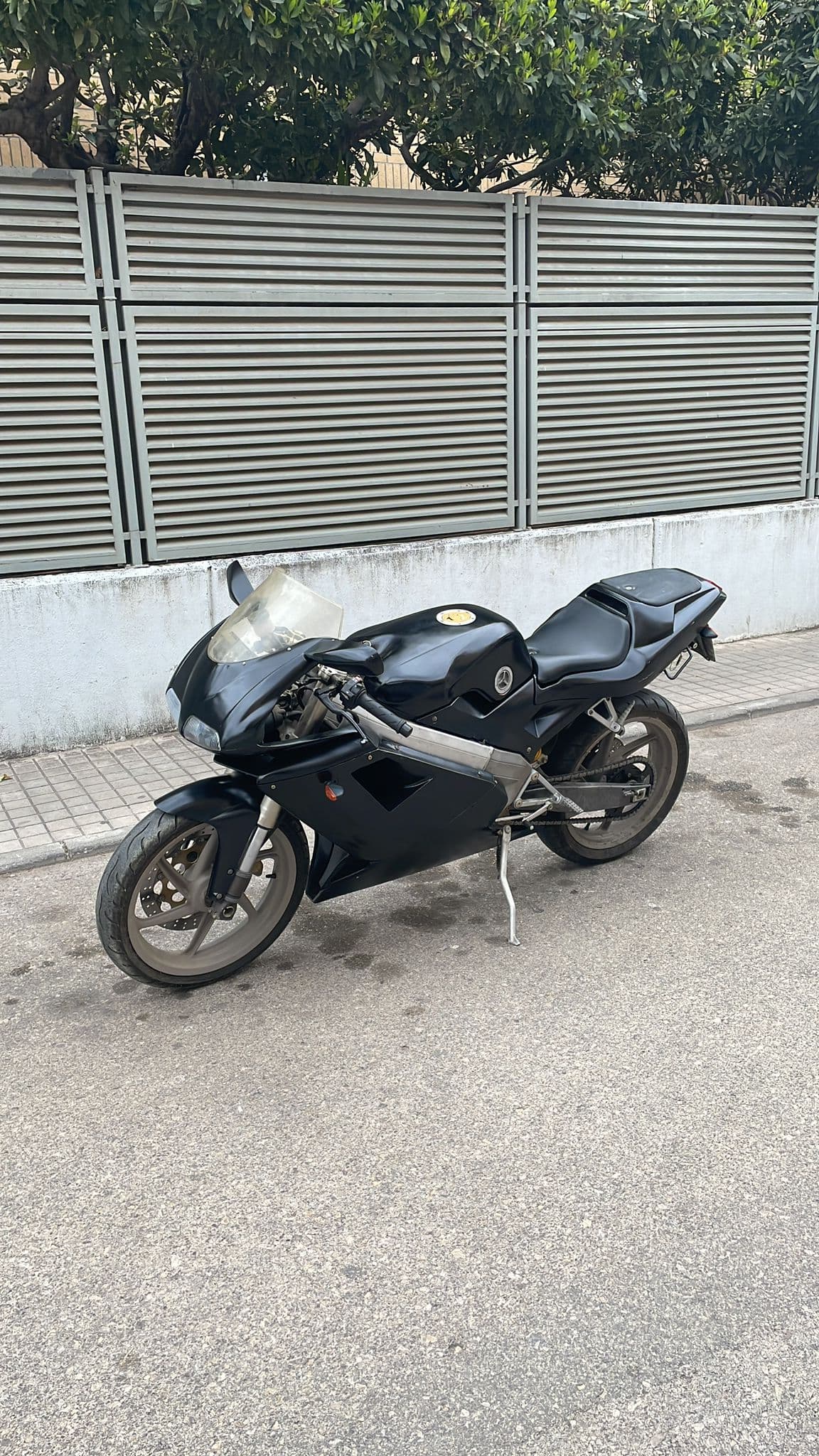 Le he echado seguro de un día y hoy la he estado probando… la verdad es que anda de cojones, hay que ajustar de carburación (limpiarlo el carburador lo primero jajaja) porque de 1.000 a 5.000rpm va rateando, en una cuesta se me ha calado tres veces, que no había huevos a subirla porque en ese regimen de vueltas le daba al puño y se me iba ahogando… que ansiedad jajajaja al final arrancando y a 6.000 vueltas soltando el embrague, un poco odisea… jejeje ahora, es a partir de 6.000 revoluciones que sube hasta arriba que da gusto, sin cortes ni ahogos, lineal y a toda hostia, cómo anda!!! cohete total