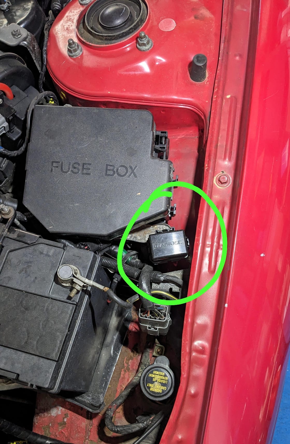 Localizamos la caja de diagnosis, junto a la batería y la caja de fusibles del motor: