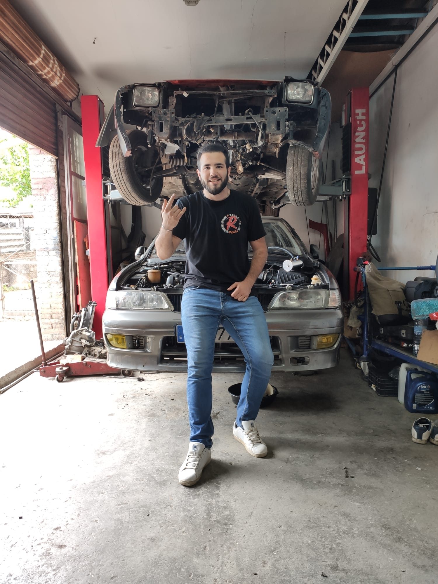El coche ya tiene el SR20DE del Primera gris estampao que compré hace un mes, le he montado mi volante de inercia aligerado junto con el kit de embrague. Además le he hecho cambio de aceite y filtro de aceite, junto con cambio de correas auxiliares.