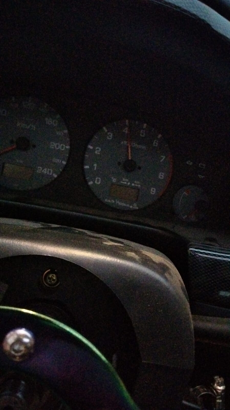 Me fui a montarle unas gomas pasables a las BBS para usarlas hasta que compre los Zestino y al salir, el coche no me arrancaba. Quedándose el tablero asi: