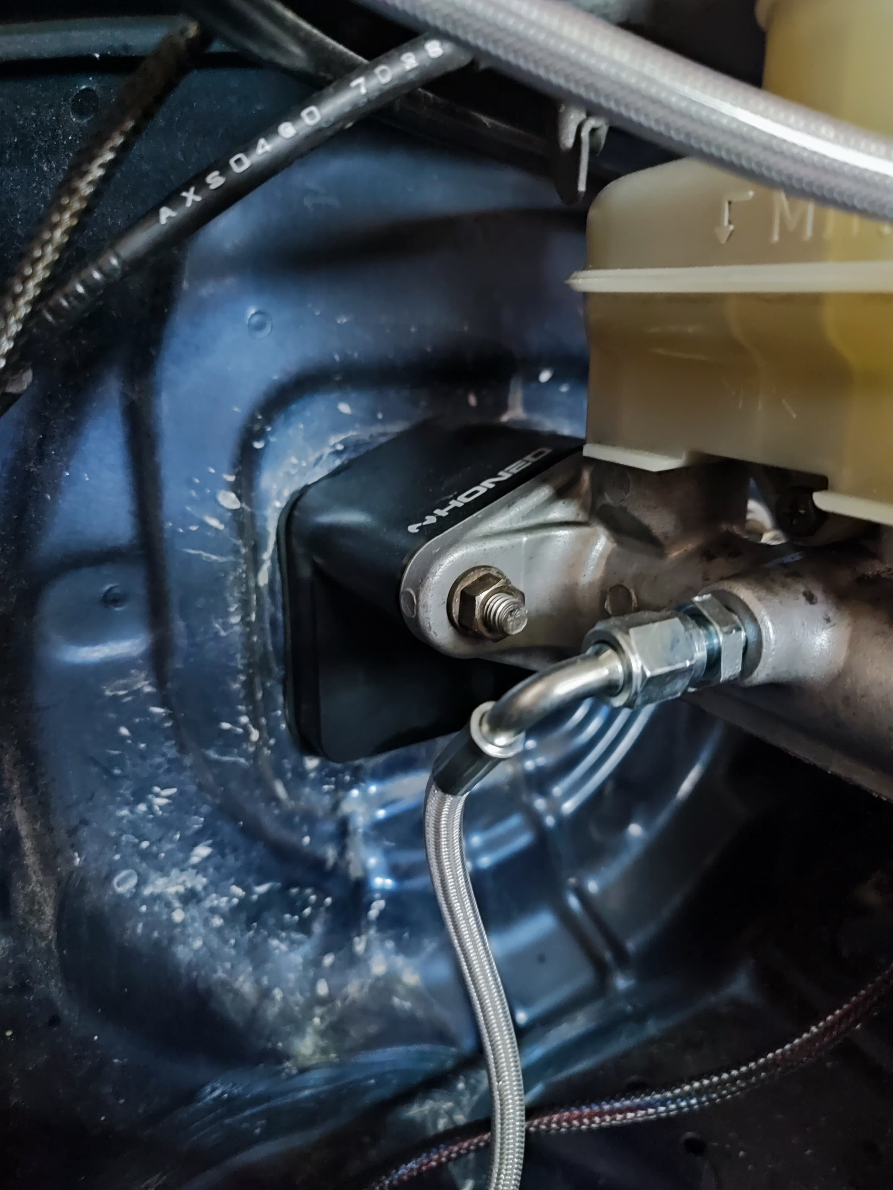 También he ido ultimando otros detalles, como hacer que la bocina funcionara, he anulado el ABS y el servofreno y he sustituido los tubos originales por latiguillos metálicos, cambiando también el repartidor de frenada de serie, por uno de Integra Type R sin ABS. La calefacción también está anulada, because racecar.