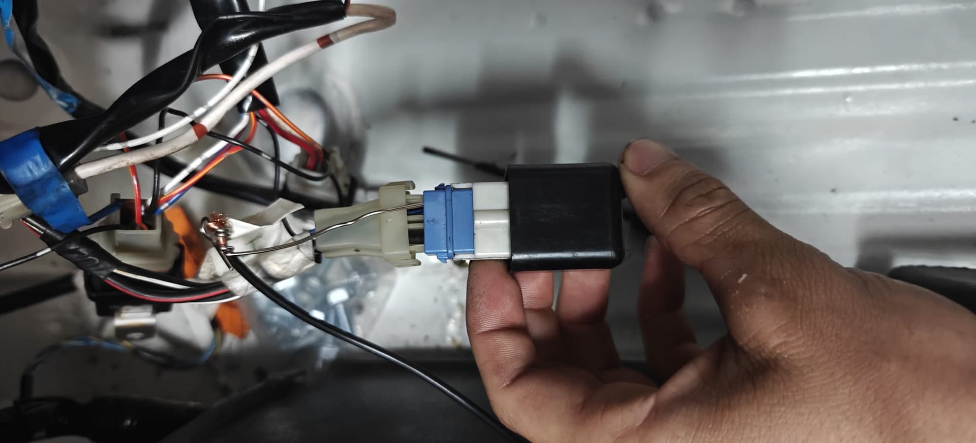 Este es el relé donde se puede ver como lo tenemos provisional para poder girar el motor