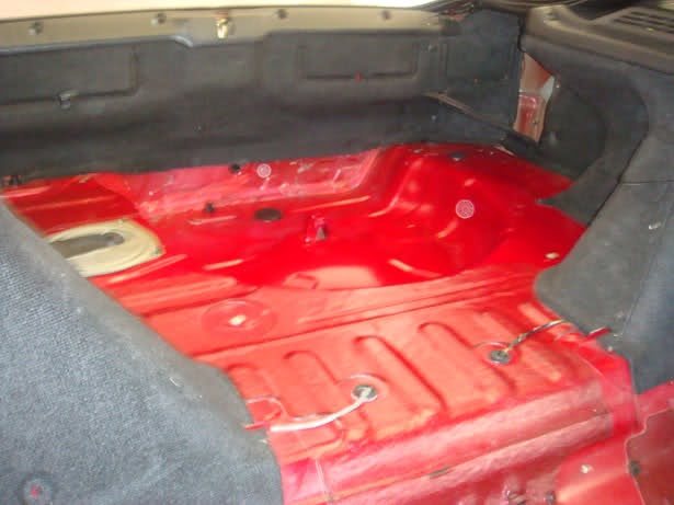 No tengo fotos del desmontaje de los asientos traseros, ni de la limpieza del maletero. Todos los aislantes estaban podrídismos y pegados, asique KH7 + disolvente y el resultado es este, listo para insonorizar de nuevo TODO el interior, que le pondré algo tipo dynamat o así, diréis que es una tontería, pero los escapes gordos en estos coches son muy muy molestos, y con esto conseguire reducir el ruido interior. Tengo que agradecérselo a mi novia, que lo dejó que se puede comer ahí.