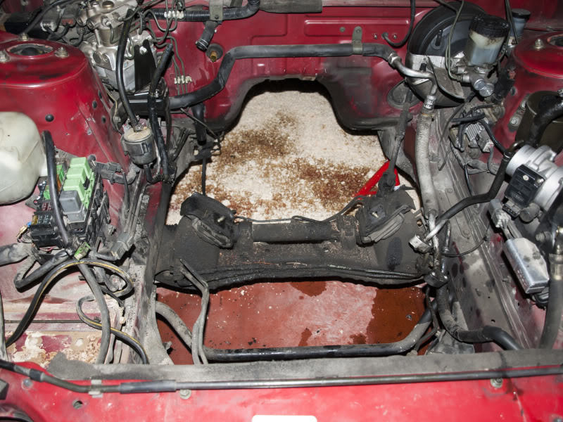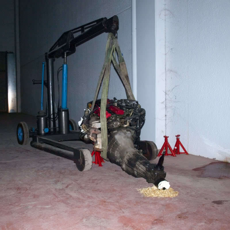 por cierto veo que habeis dejado los tacos de motor puestos en el sitio! en principio se ahace alreves, se sueltan de abajo, porque la parte del motor el aguero es redondo pero en la parte del subchasis son hendiduras alargadas para que sea facil levantar el motor recto aunque los tacos esten en diagonal, pero vamos , con esa grua … como que os habra dado igual jaja