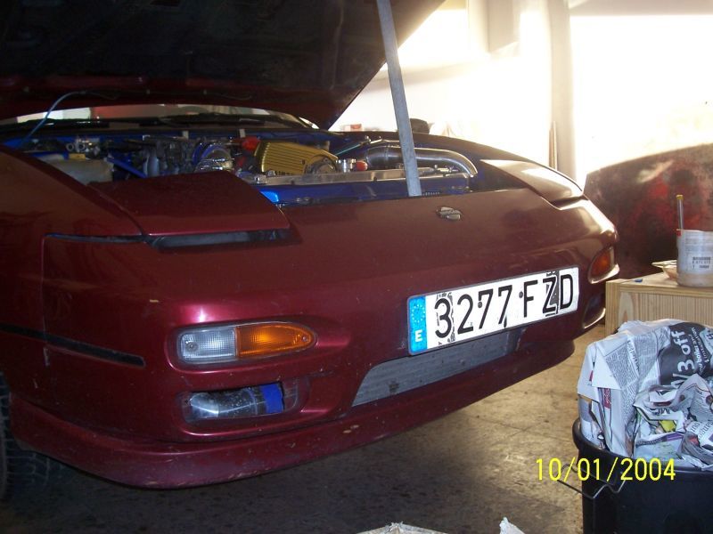 Bueno al paragolpes delantero tenia pensado unas cuantas modificaciones que me rondaban por la mente que eran añadirle las entradas de aire de GTR para mejorar el aire que le da al intercooler i la anulacion del emblema i la implantacion de la entrada de aire “bigote” o “morro de cerdo” o como querais llamarlo del paragolpes pre-restyling, cosa que pense que seria facil, pero nada mas lejos me llevo un buen curro i aun asi aun falta de retocar, trabajo que les dejo a los futuros chapistas cuando se pinte xD