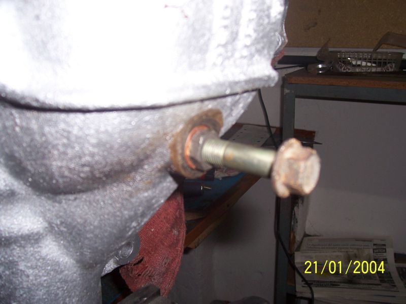 Modificando la toma de la pinza trasera para poder montar el latiguillo metalico goodridge de tipo banjo, tuve que cortar el tornillo porque era demasiado largo i hacerle el asiento para el conico interior de la pinza i alisar la pinza con una lima para que sellara bien la arandela de cobre