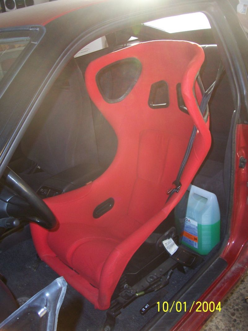 I una foto del backet que llevo i no llegue a enseñar, es un backet de fibra pero sin marca, agarra muy bien i me salio regalado, lo monte con unas guias super low de driftworks, ah i lo monte despues de salirme del asiento varias veces en rotondas i curvas XD