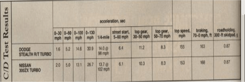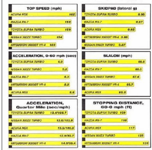 En aceleraciones de 0-60 mph (96 km/h) y del 1/4 de milla esta sólo por debajo del Supra, y este último era más moderno.