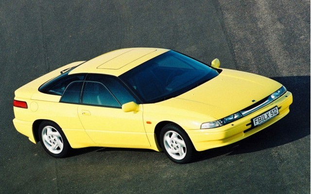 Alguien se acuerda del Subaru SVX de principios de los 90? Esteticamente discutible, pesado y perrote: 6 cilindros boxer de 3,3 l. y 230 cv, 1800 kg, 0-100 alrededor de 9 sg …