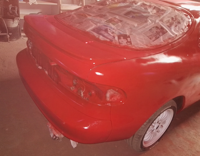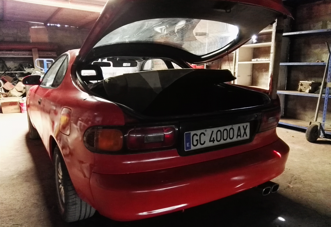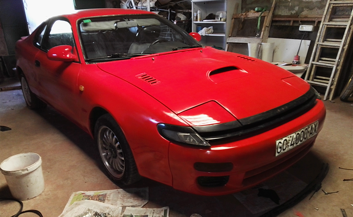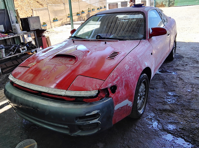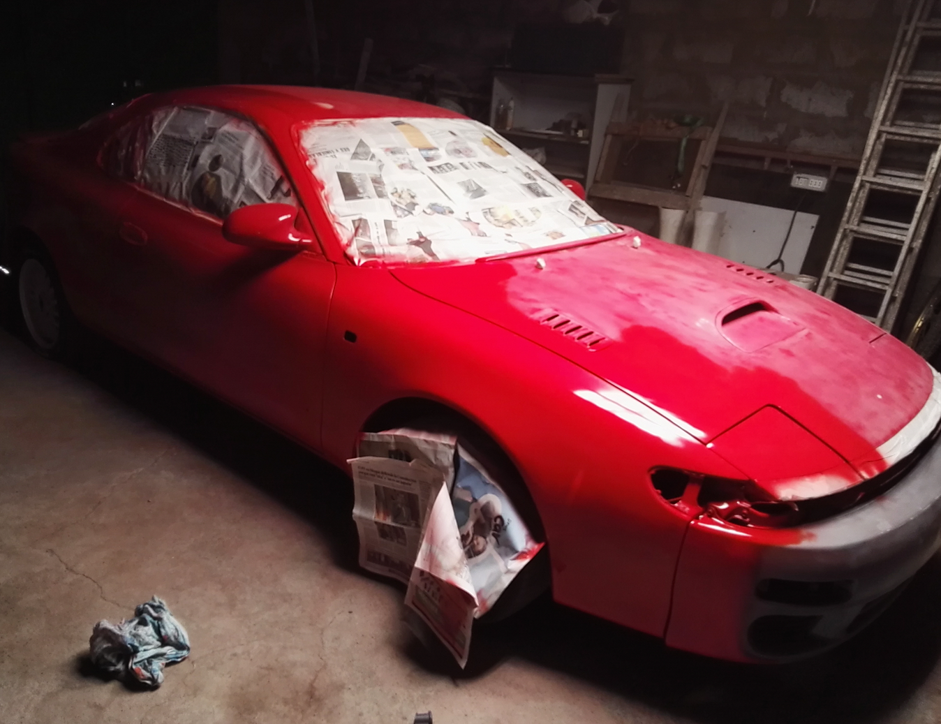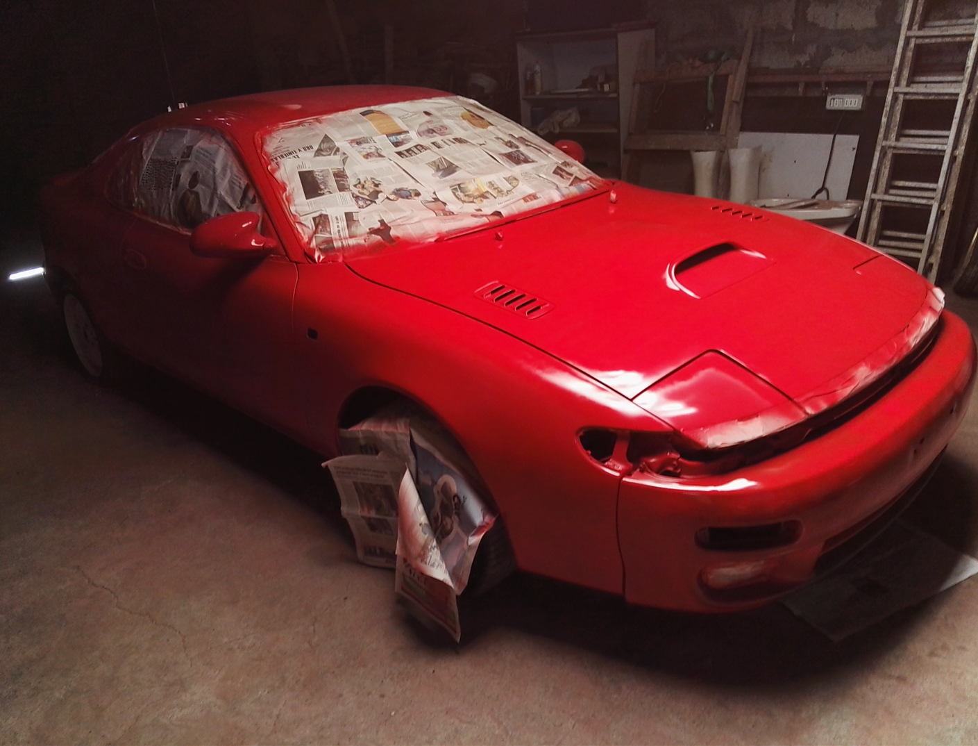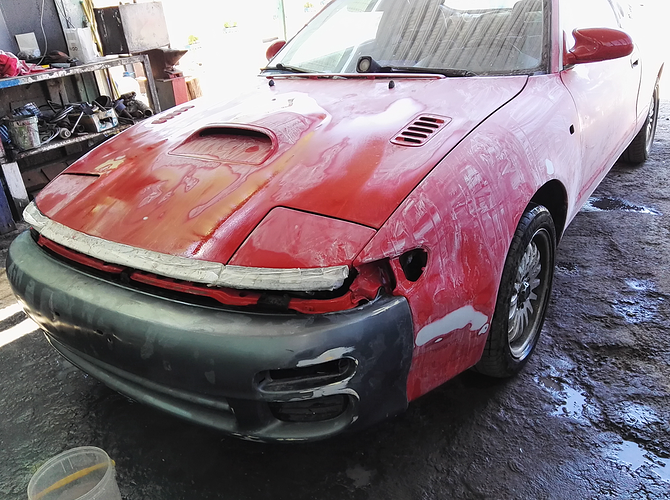 Celica: Está en proceso de pintura, lo he lijado completo con lija muy fina y ya lo hemos empezado, va quedando bien. Le he dado un lavado de cara a los pasos de rueda interiores, los frenos y a las llantas.
