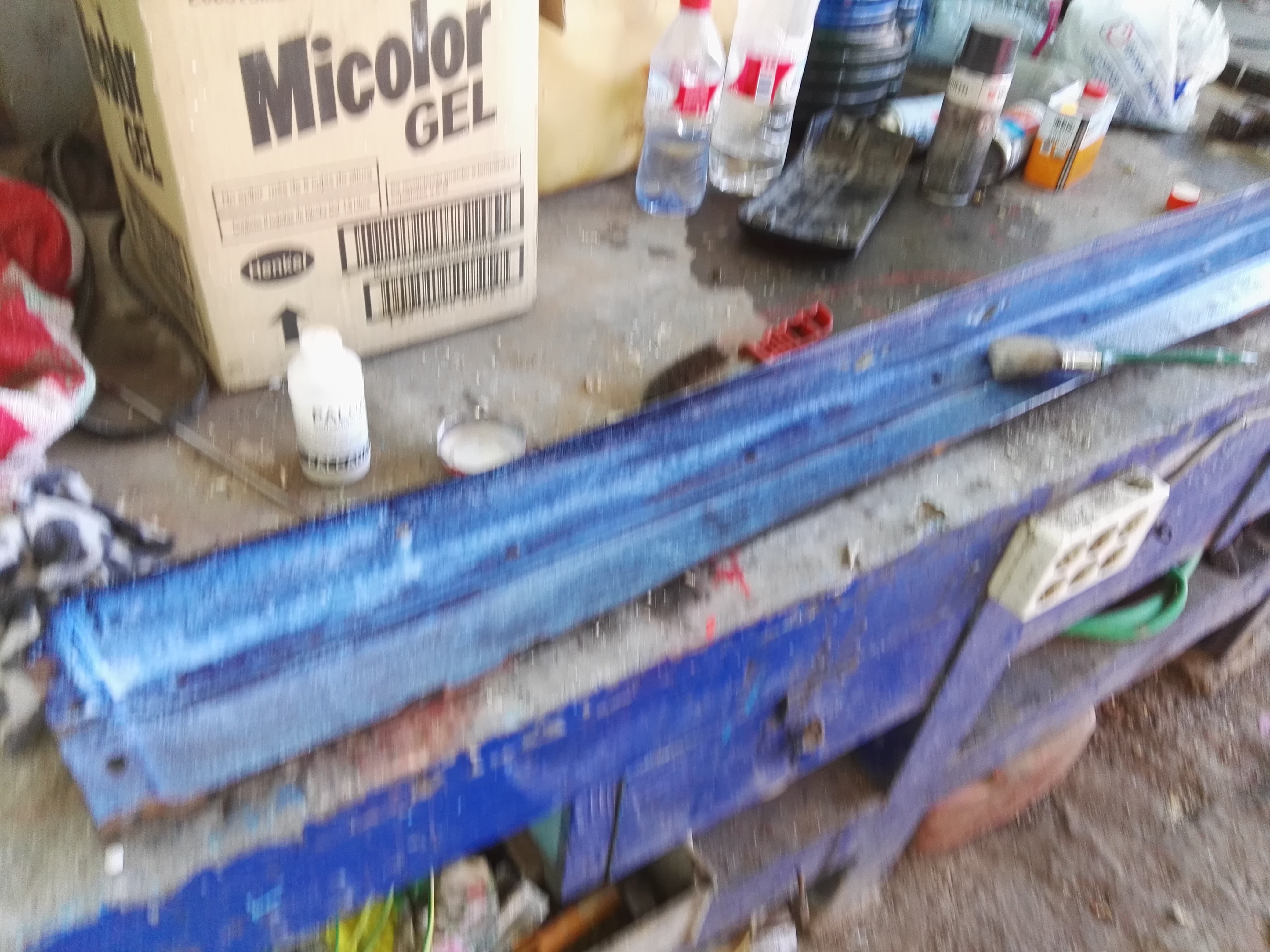 Aquí se ve, aunque mal porque se me movio la cámara, el parachoques trasero ya limpio de oxido y con el convertidor de oxido aplicado, no saqué fotos terminado pero lo unico que le hice despues fue pintarlo