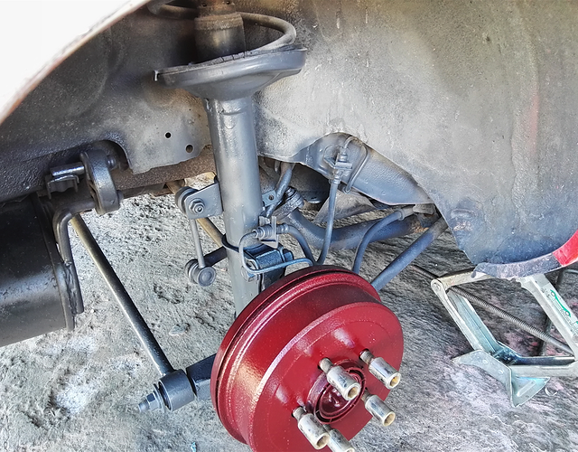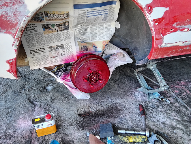 Los pasos de rueda recibieron un lavado de cara, limpié el oxido de los tambores, las pinzas y los amortiguadores y pinté todo. No tengo fotos de como estaban antes, pero estaban un poco feos, no estaban mal, pero estaban sucios.