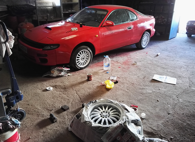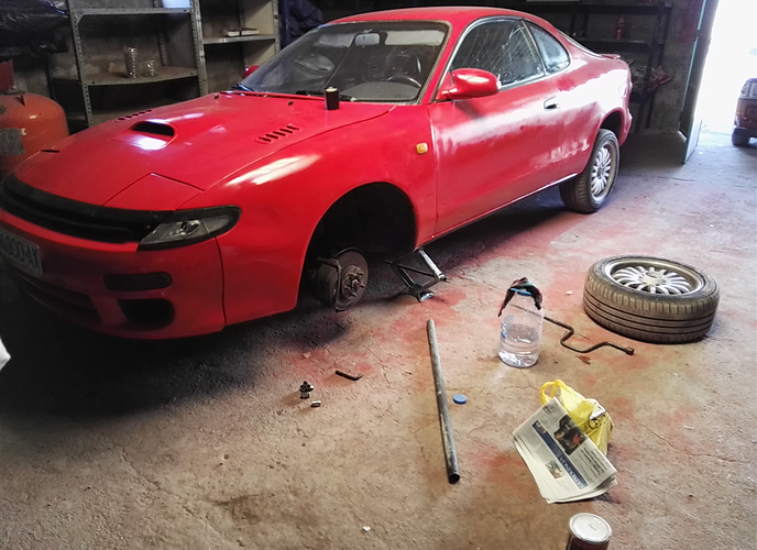 Celica: lo termine de pintar, le saqué las llantas, lavé los pasos de rueda interiores, pinté todos los freno y todas las llantas, le monté un montón de piezas, lo metimos en la fosa y revisamos los bajos, lo pusimos al dia, pasamos la itv y veinte mil millones de cosas mas