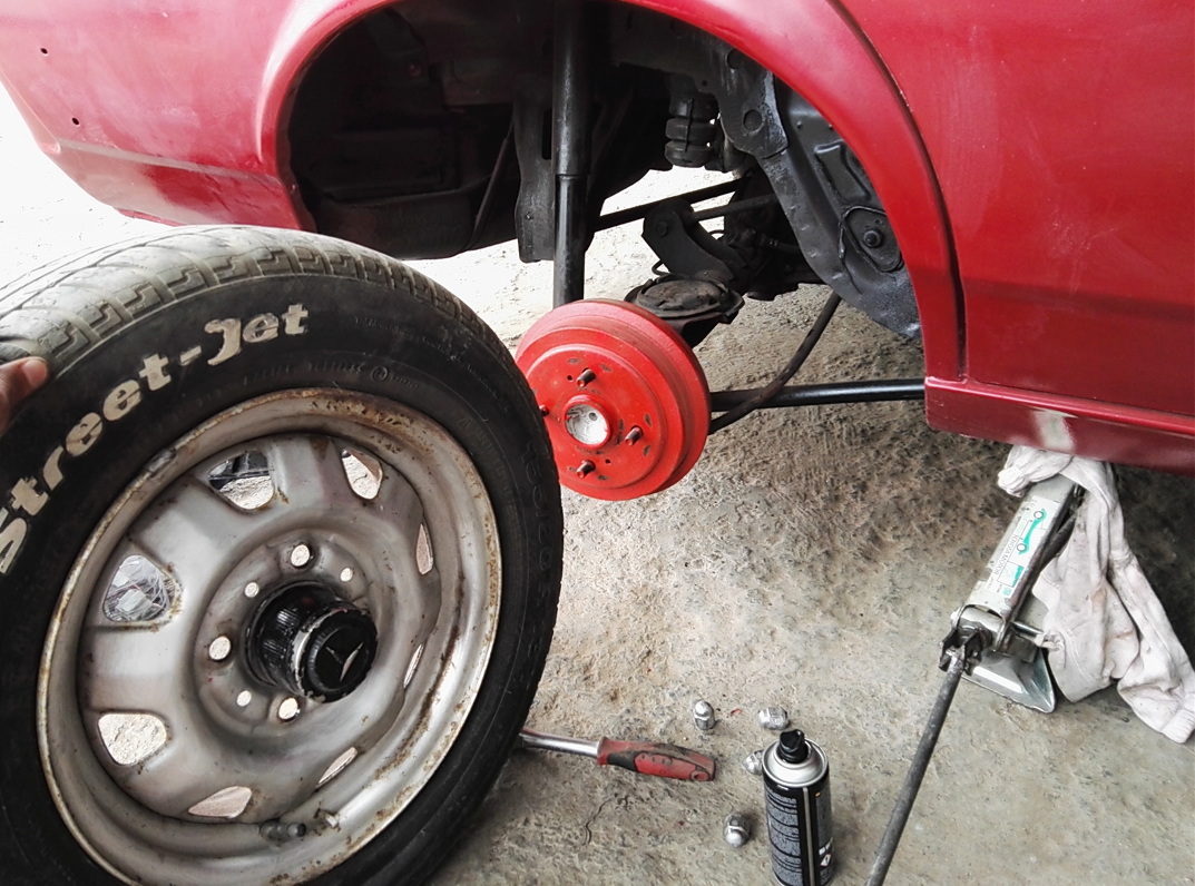- Corolla: He vuelto a pintar todos los pases de rueda interiores, las pinzas, y los tambores. ¿Por qué? Porque tenía que colocar los plasticos que van por dentro de los guardabarros para proteger y de paso decidí volver a dejarlo