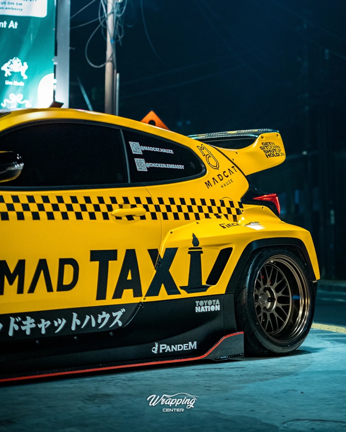MAD TAXI GR Yaris Pandem + trabajo espectacular de vinilado de @Wrapping_Center = Mad Taxi, una locura que no deja a nadie indiferente #madtaxi #pandemrocketbunny #gryaris #jdm
