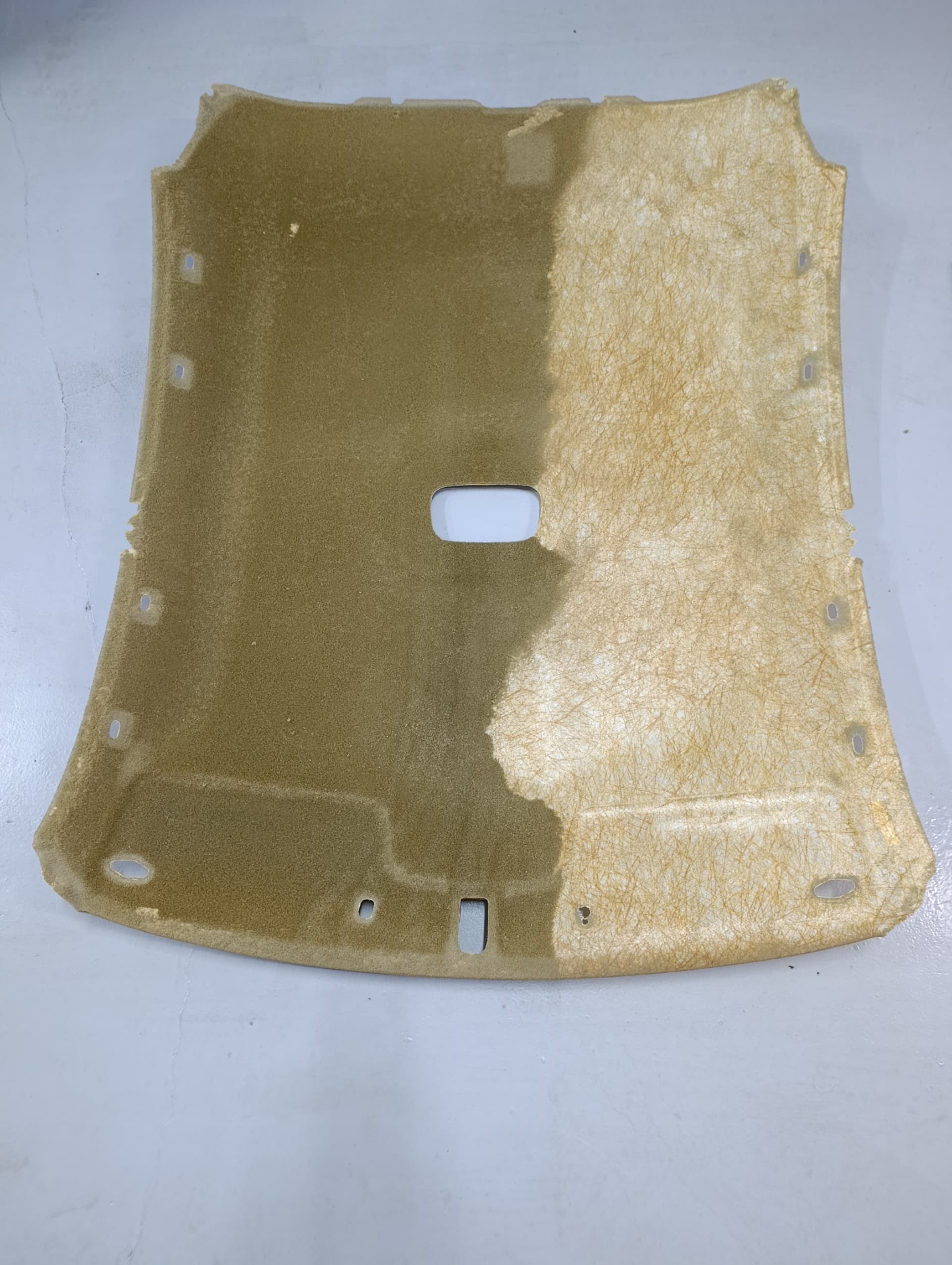 Quitado el techo para retapizar, llega el momento de quitar la tela de la base y posteriormente quitar el resto de esponja verde de la base para pegar la tela nueva, os paso dos fotos.