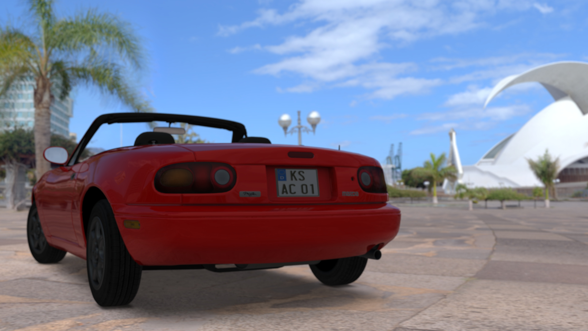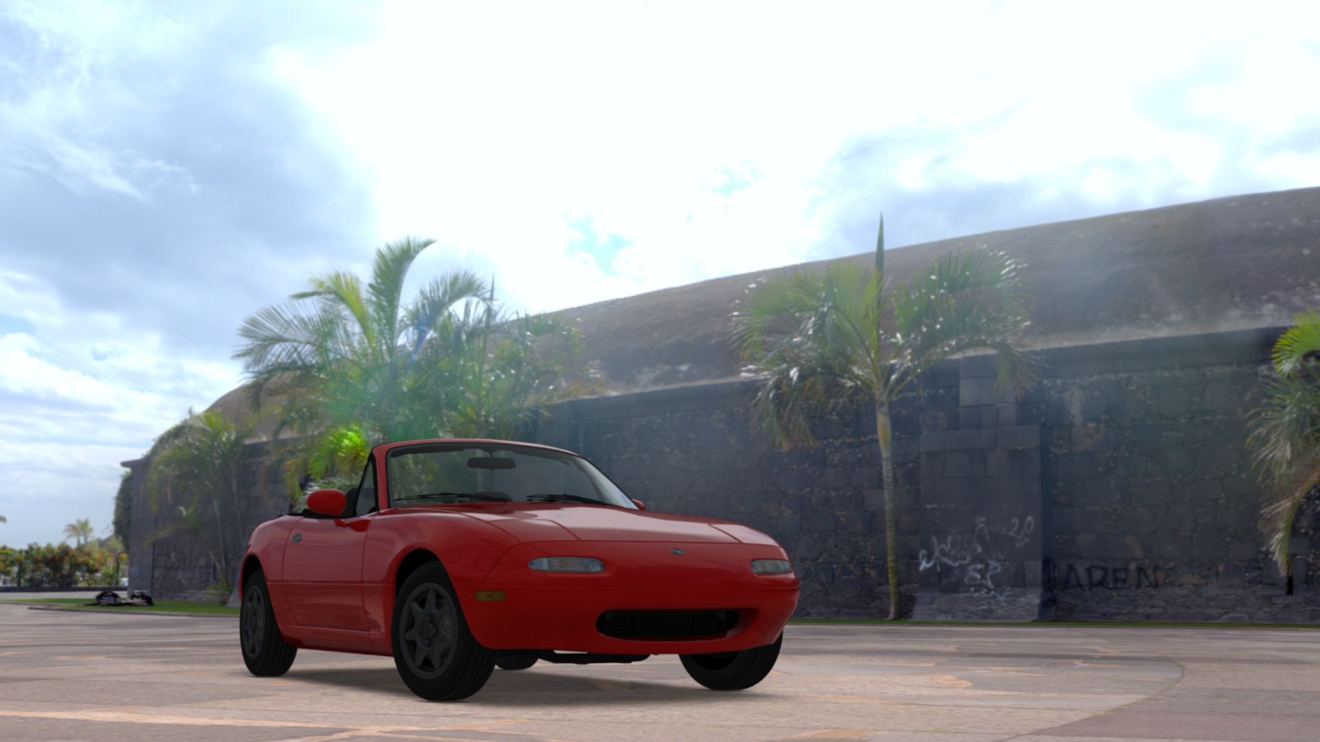 Empezamos con el Miata original. 130 CV, apenas 1000kg de peso. Es un juguete muy divertido de conducir.