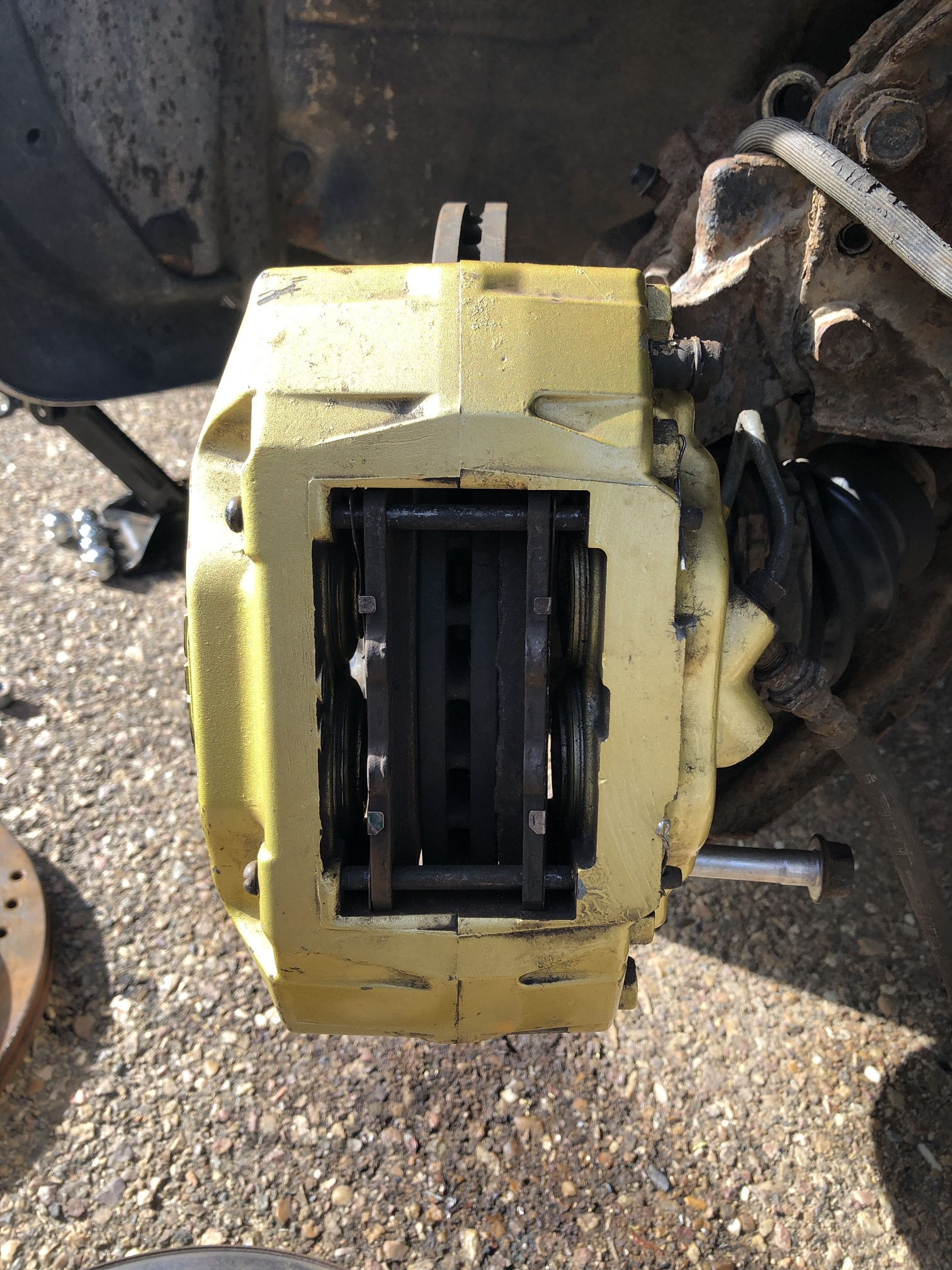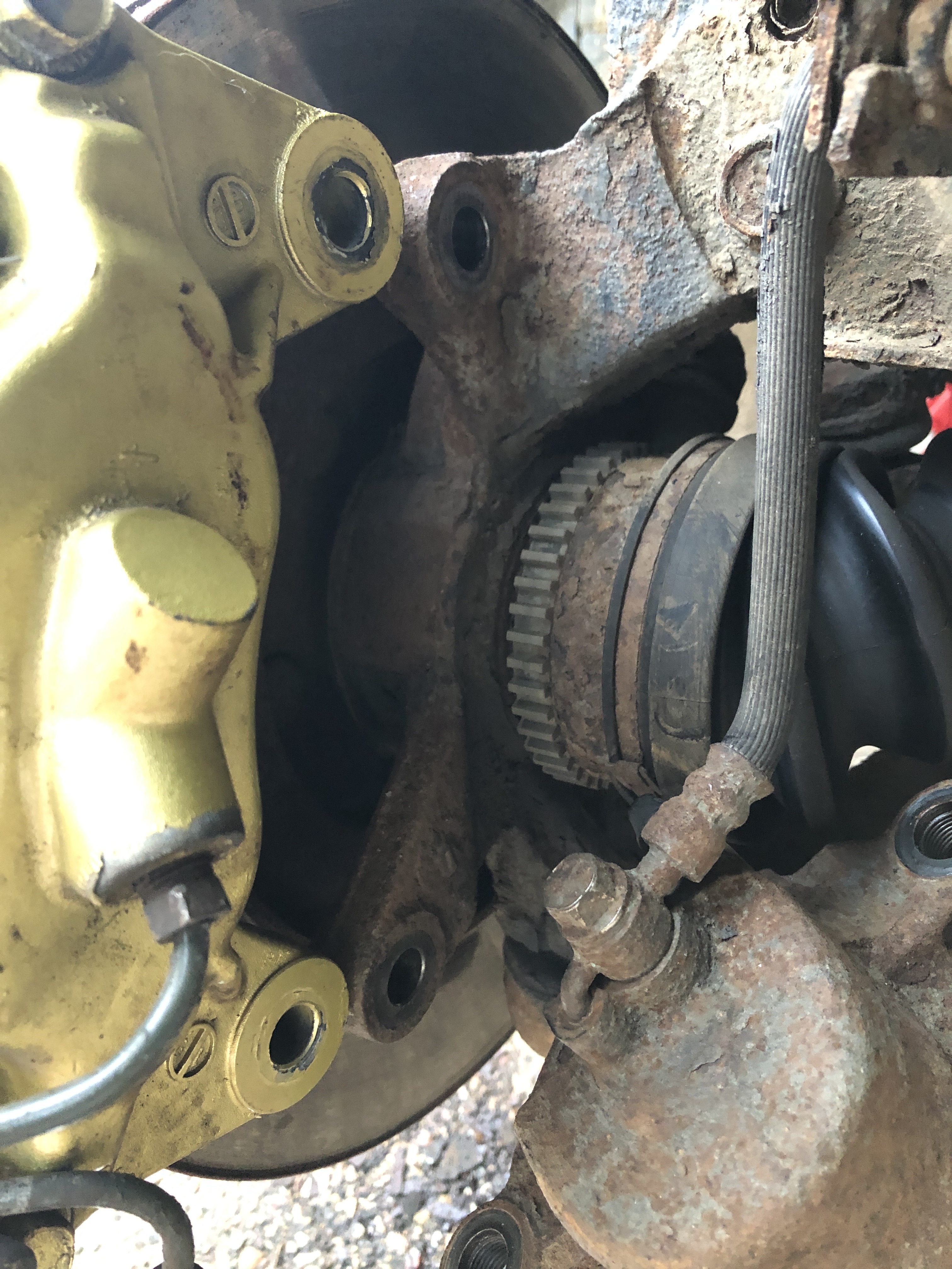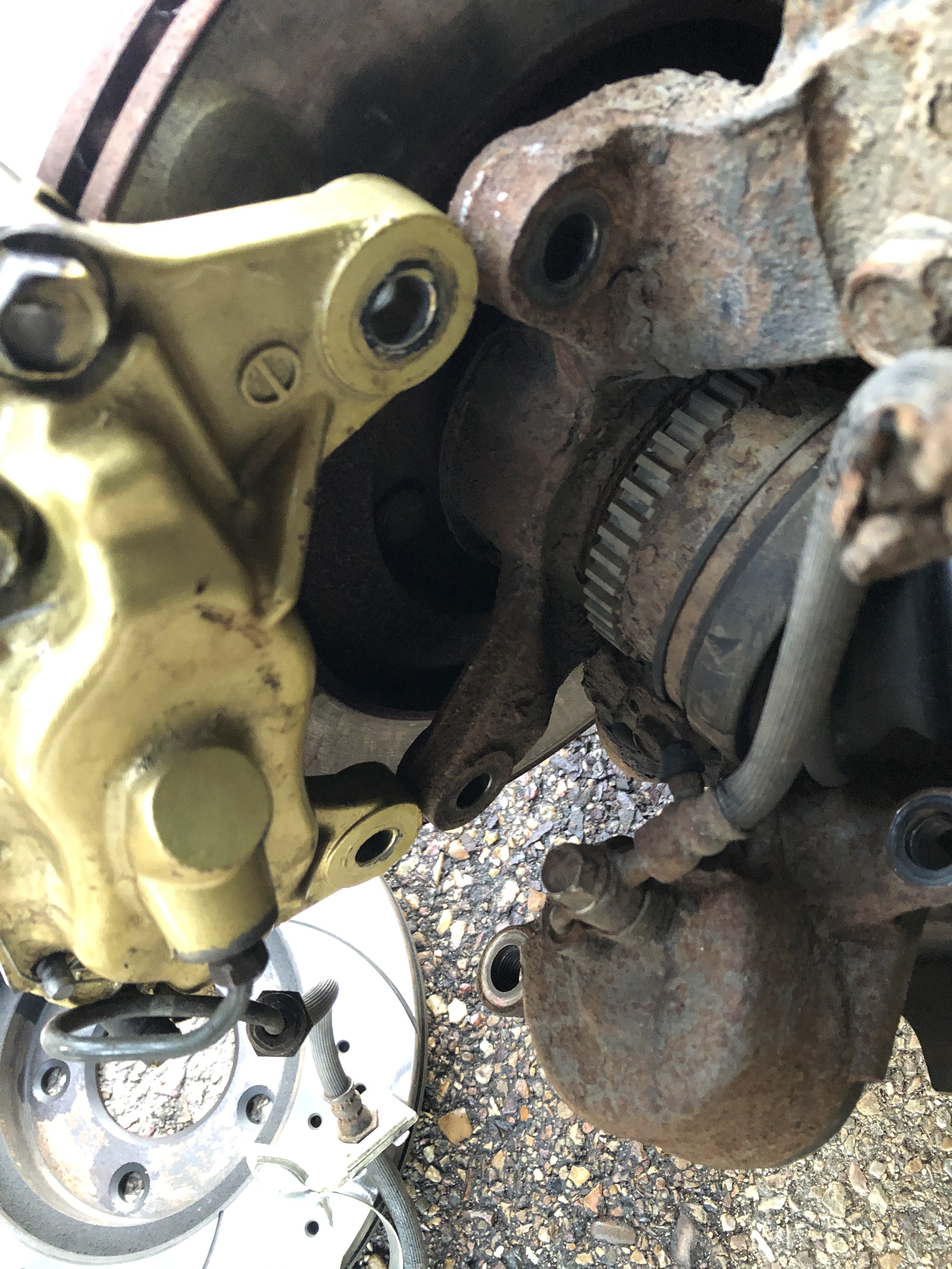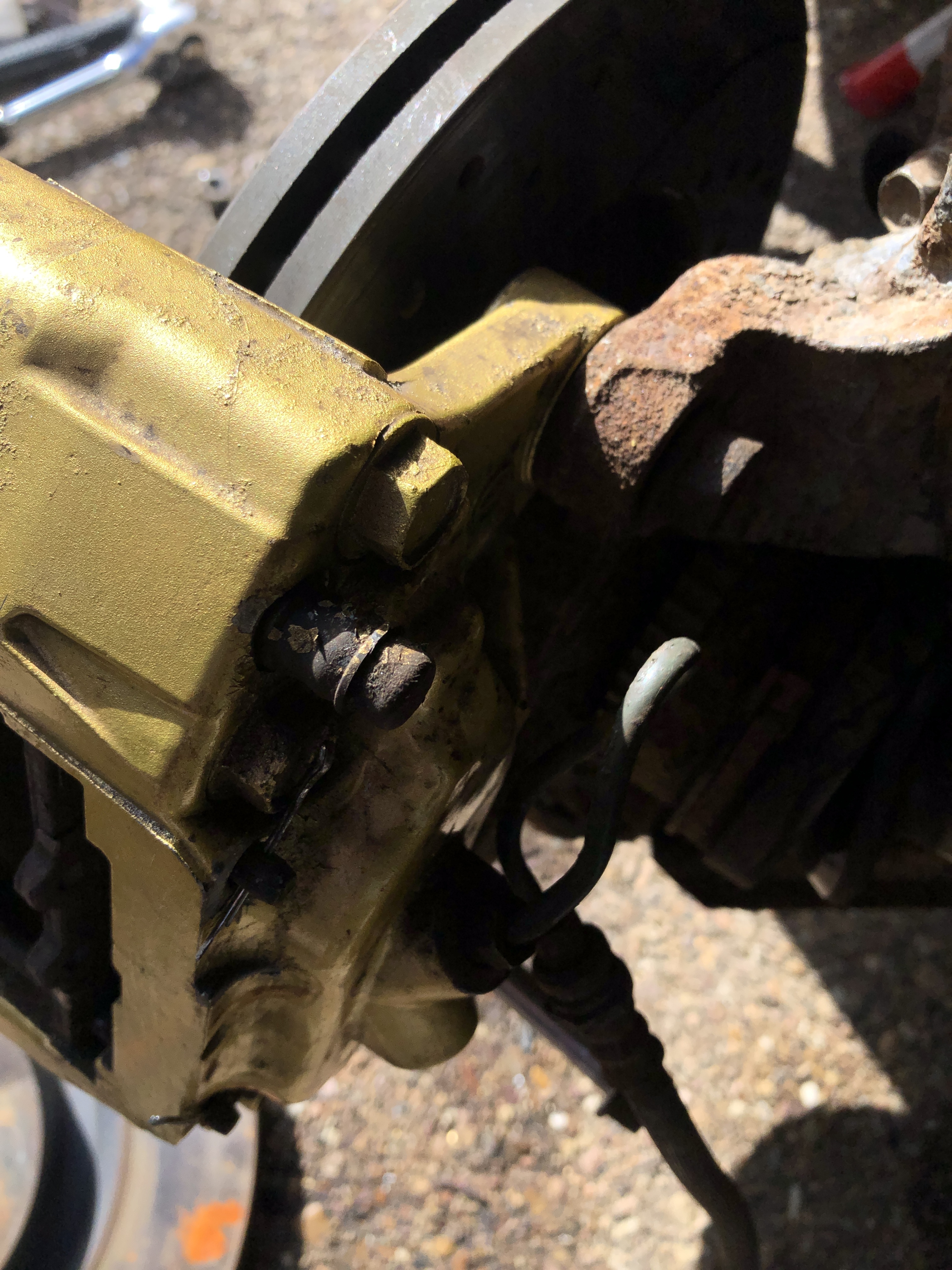 Bueno pues segundo dia de pruebas y hoy hemos puesto la pinza como normalmente va de origen, aprovechando las sujeciones de la mangueta donde va anclado el soporte de la pinza original.