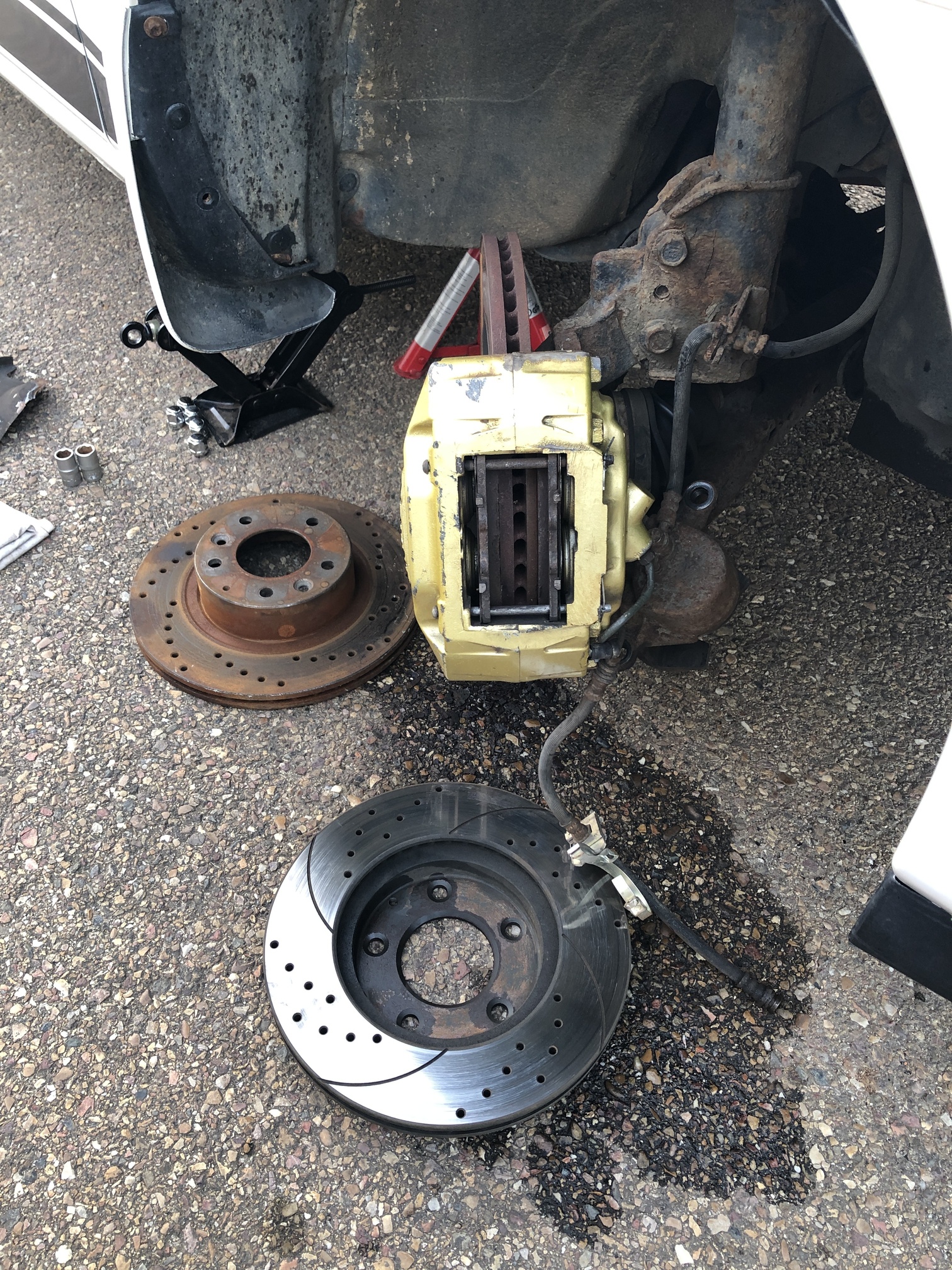 Con los discos de RX7 FD toca desplazarlos mucho mas, lo que es un problema porque la llanta sobresaldría bastante mas.