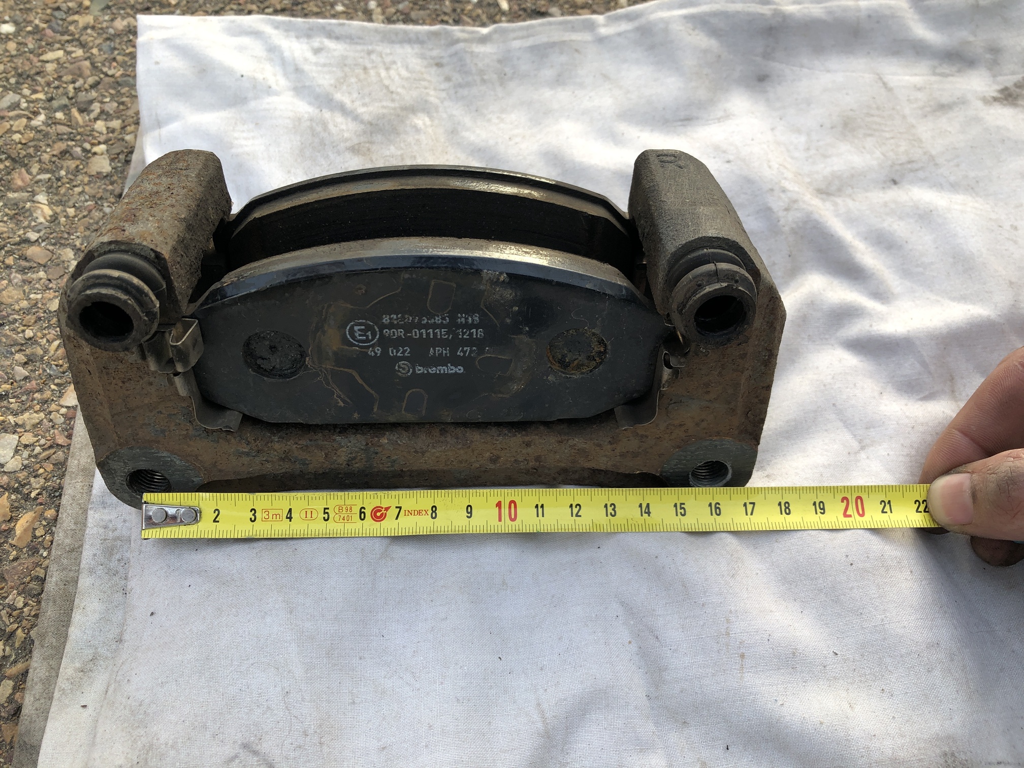 En lo primero que nos fijamos es la distancia entre agujeros de la pinza de RX7 (15,7cm aprox.) y las del soporte de pinza de origen que en este caso son (16cm) ; esto en principio no es problema y es de fácil solución.
