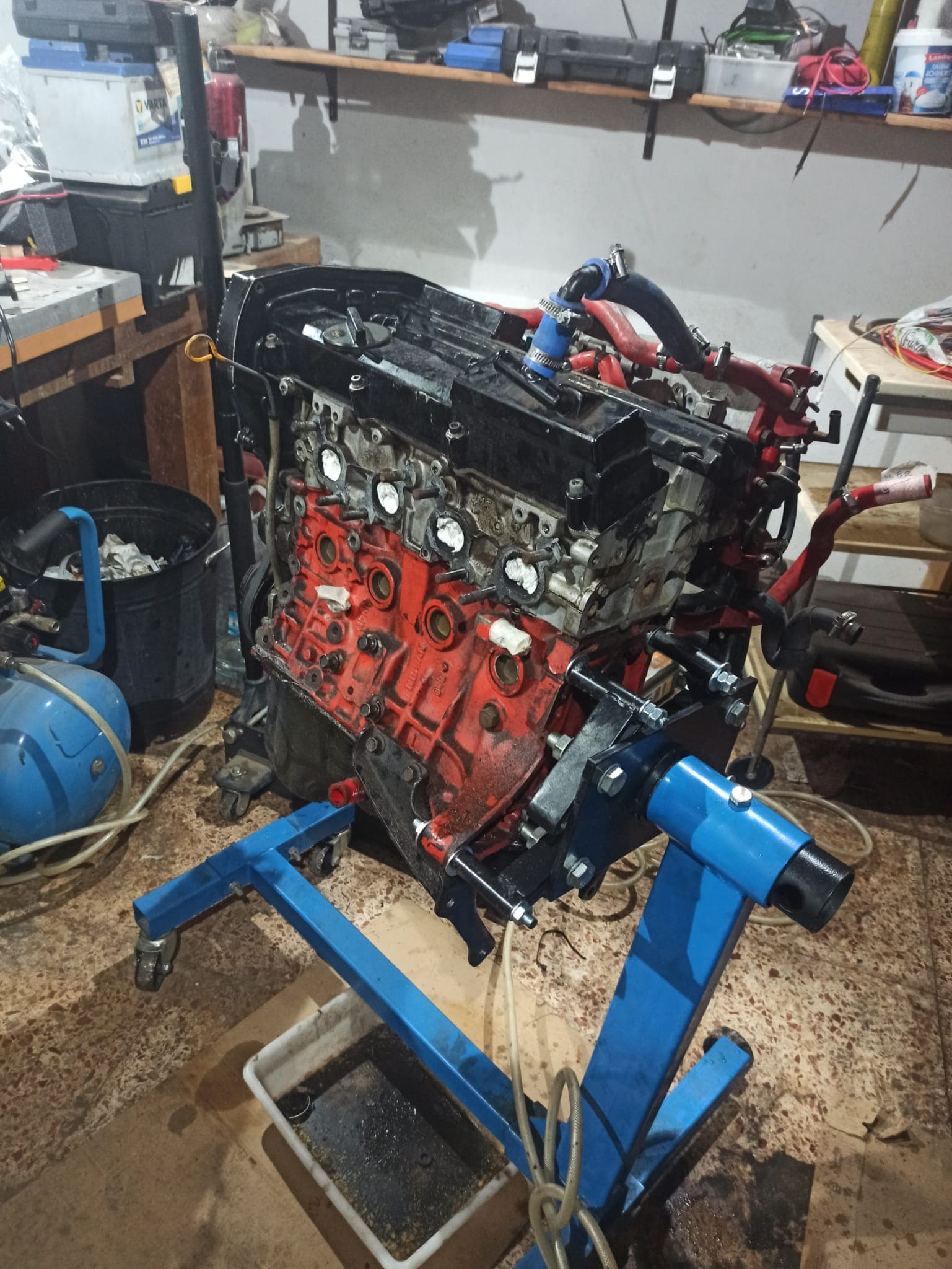 Procedimos a sacar la caja de cambios, prensa de embrague y volante de inercia para poder subir el motor al banco y empezar con su puesta a punto, empecé por quitar la parte del escape y hasta la fecha luce así, seguiré actualizando a medida que vaya avanzando con ello pero ya podéis ir viendo que el motor sudaba y perdía aceite por varios sitios.