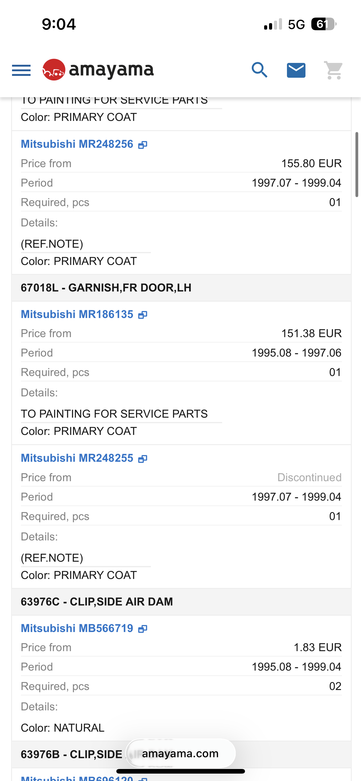 Yo te recomendaría que, en lugar de buscar la pieza en concreto, busques “Despiece Mitsubishi Eclipse”, de esa manera encontrarás coches “completos” siendo despiezados, y quizás esa pieza aun esté en el coche.