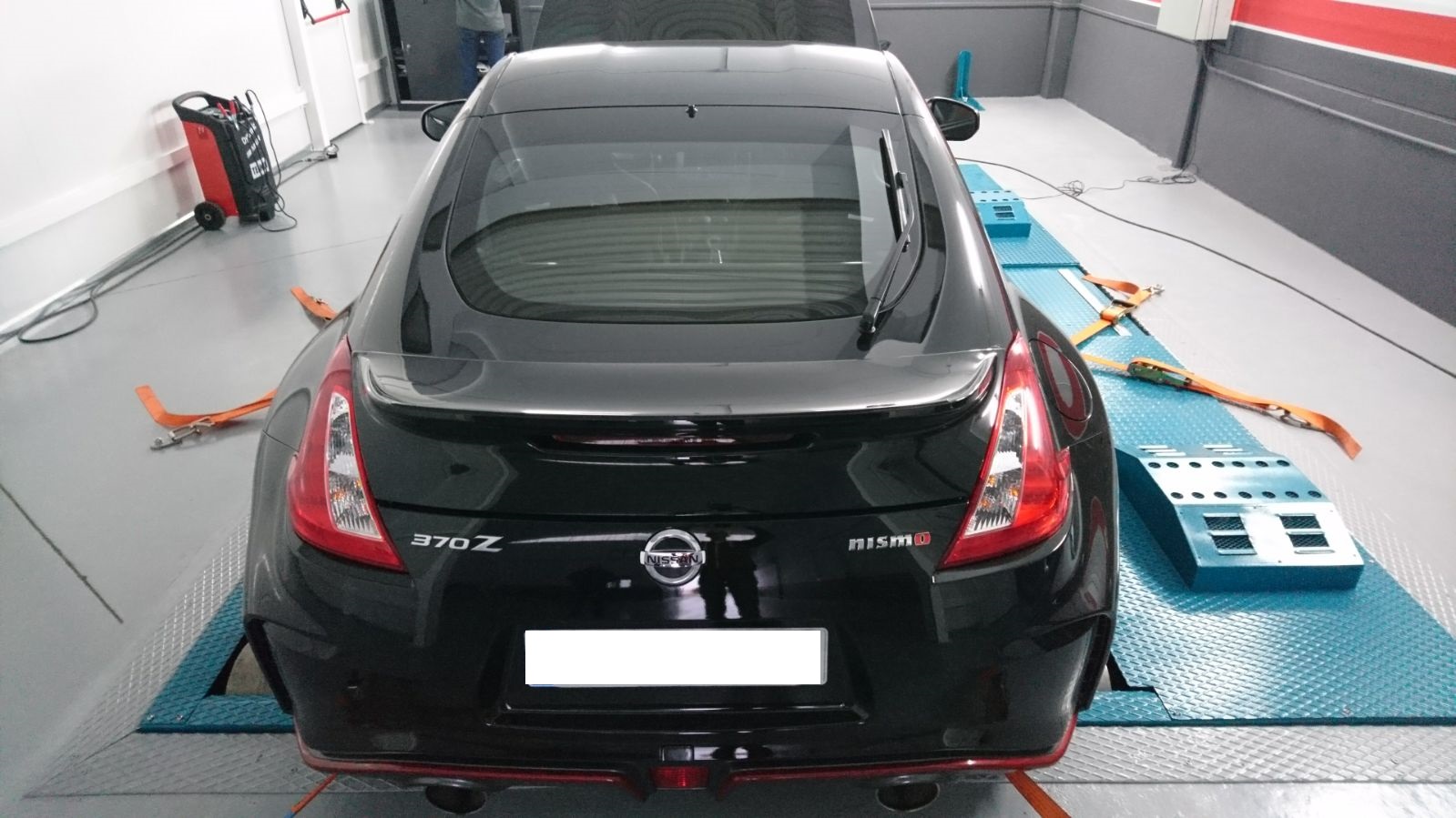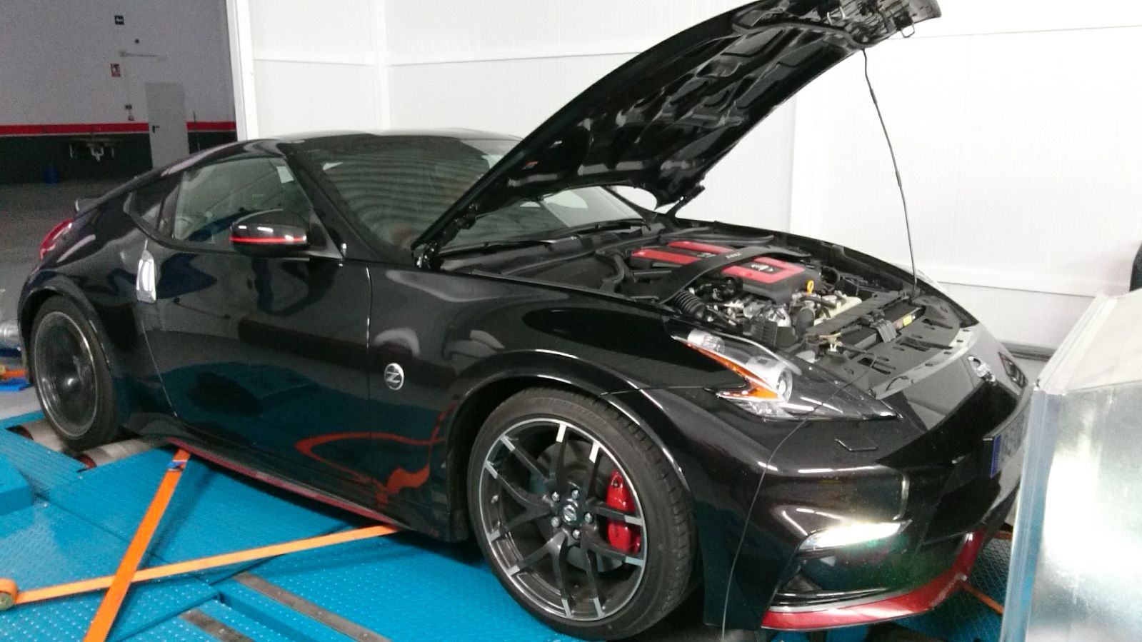 El 370z Nismo tiene aproximadamente 305cv REALES (lo metí en banco cuando aún estaba estríctamente de serie) y aunque no pude ver la gráfica de par por un problema con el lector de revoluciones del banco, no creo que tenga más de 360 N/m aprox.