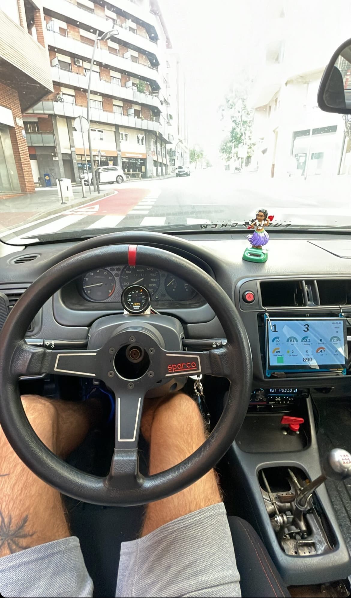 Compre en aliexpress la tipica consola para poner una pantalla, baje el clima y la radio abajo y el reloj de mezcla delante del cuadro y la verdad que parece “de serie”.