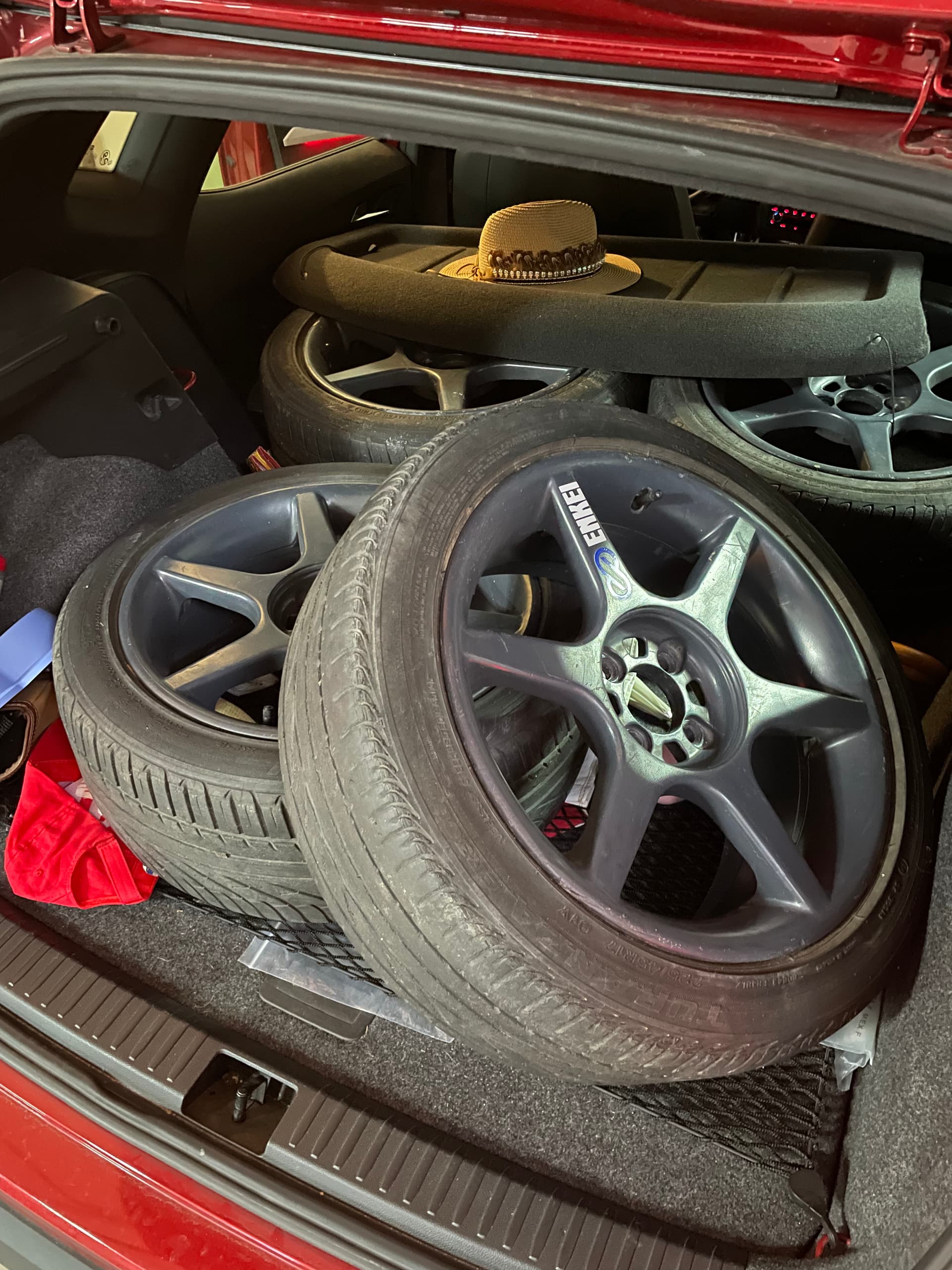 Pensaba que tendria mas problemas en meterlas pero nada, solo ajustar la altura de la suspensión y mirar que no rojara en ningun lado. No todo es bonito, me roza si hago tope de giro a la derecha pero bueno, lo dejare así. Para los neumaticos tenia duas de que montar, al final me decidi probar los Zestino GREDGE 07R en 235/40 ZR17. Asusta un poco per el neumatico tan enorme para un civic pero si, entran. Dejo algunas fotos de como quedan, la verdad que brutales.