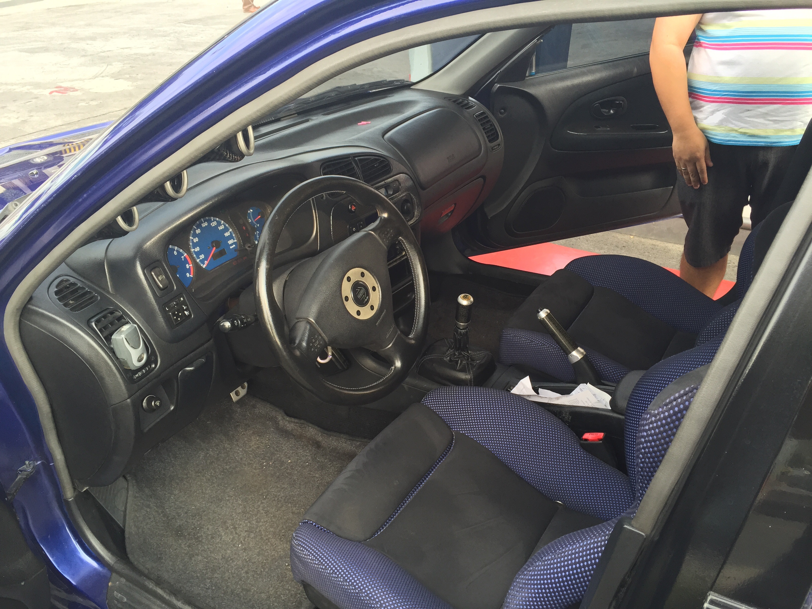 Todo no es color de rosa, tiene una fuga del escape que sospecho que esta despues del colector, al dejar de acelerar da algunos tironcillos , esto supongo que cambiando filtro y bujias y limpiar la admision bastará. Mucho tiempo sin moverse solo arrancandolo en un garage. Las gomas delanteras tengo que cambiarlas pq estan cuarteadas, las traseras son nuevas. El boton de los antinieblas funciona pero muy raro, se queda como hundido. La talonera derecha tiene una grapa rota, eso es barato. Y hay que pintar los frenos que estan muy apagados. Eston son los defectos que tiene. La conducion va perfecta, el primer dia que lo cogi le aprete un poco y aparte de hundirme en el asiento me tuvo que decir el colega que iva a 160 jajajaja. No me di cuenta.