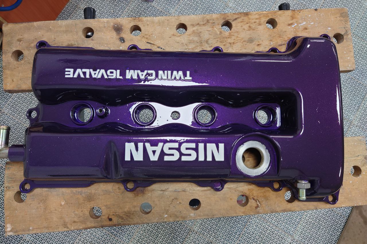 Aprovechando que tenía que quitar la tapa de balancines decidí darle algo de color, y como el coche es oscuro, con un azul que a veces parece que cambia de color hacia morado (pero muy poco) pinté la tapa de balancines de morado con las letras en blanco.