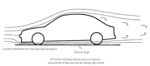 Resumiendo, para hacer un fondo plano efectivo necesitas que el aire pase mas rápido por abajo que por arriba, esto es lo que crea una zona de baja presión, y a mas rápido pase el aire, mas carga.
