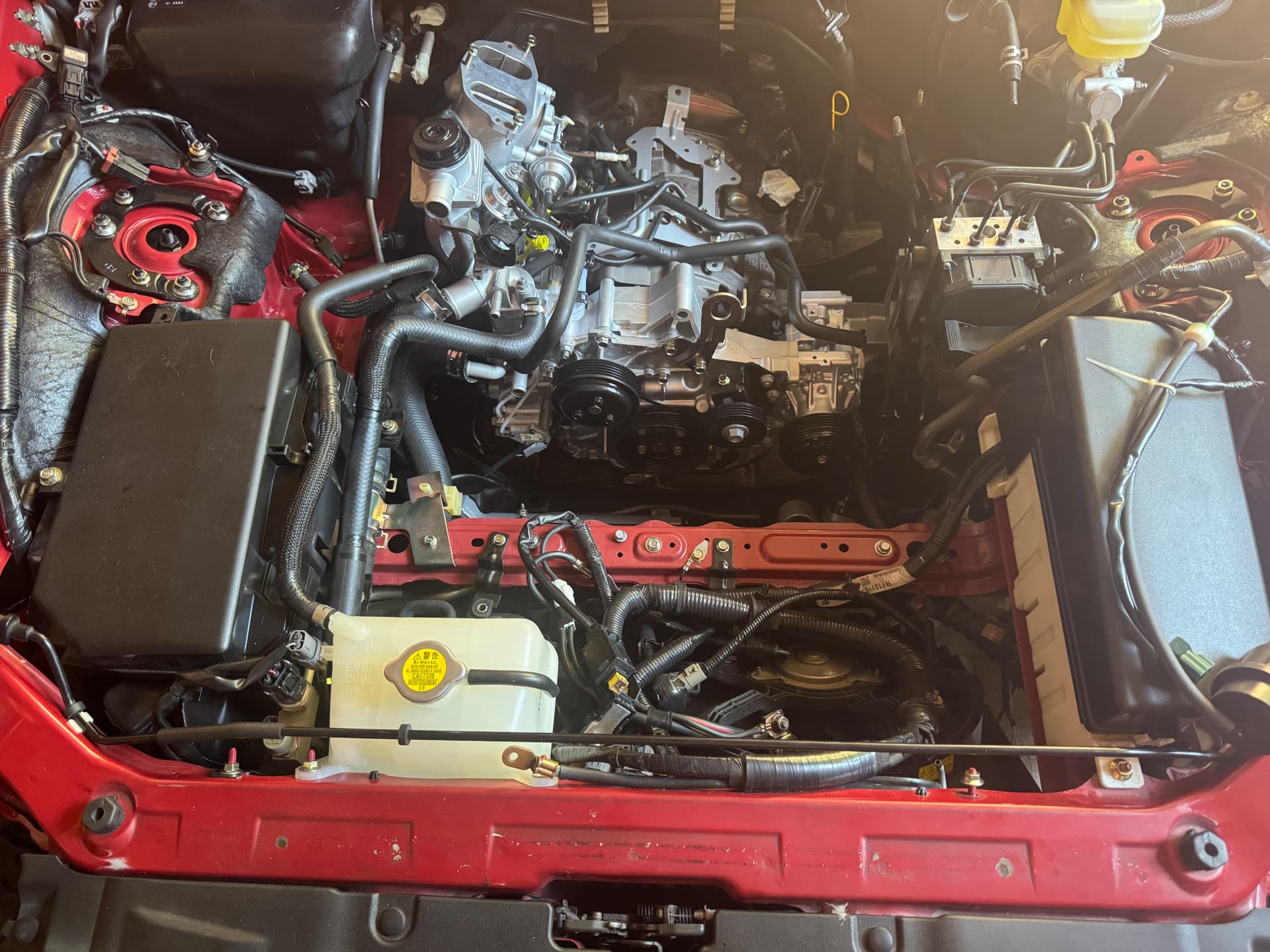 Ya tengo todo el motor montado en el vano. Por fin empieza a parecer un coche otra vez