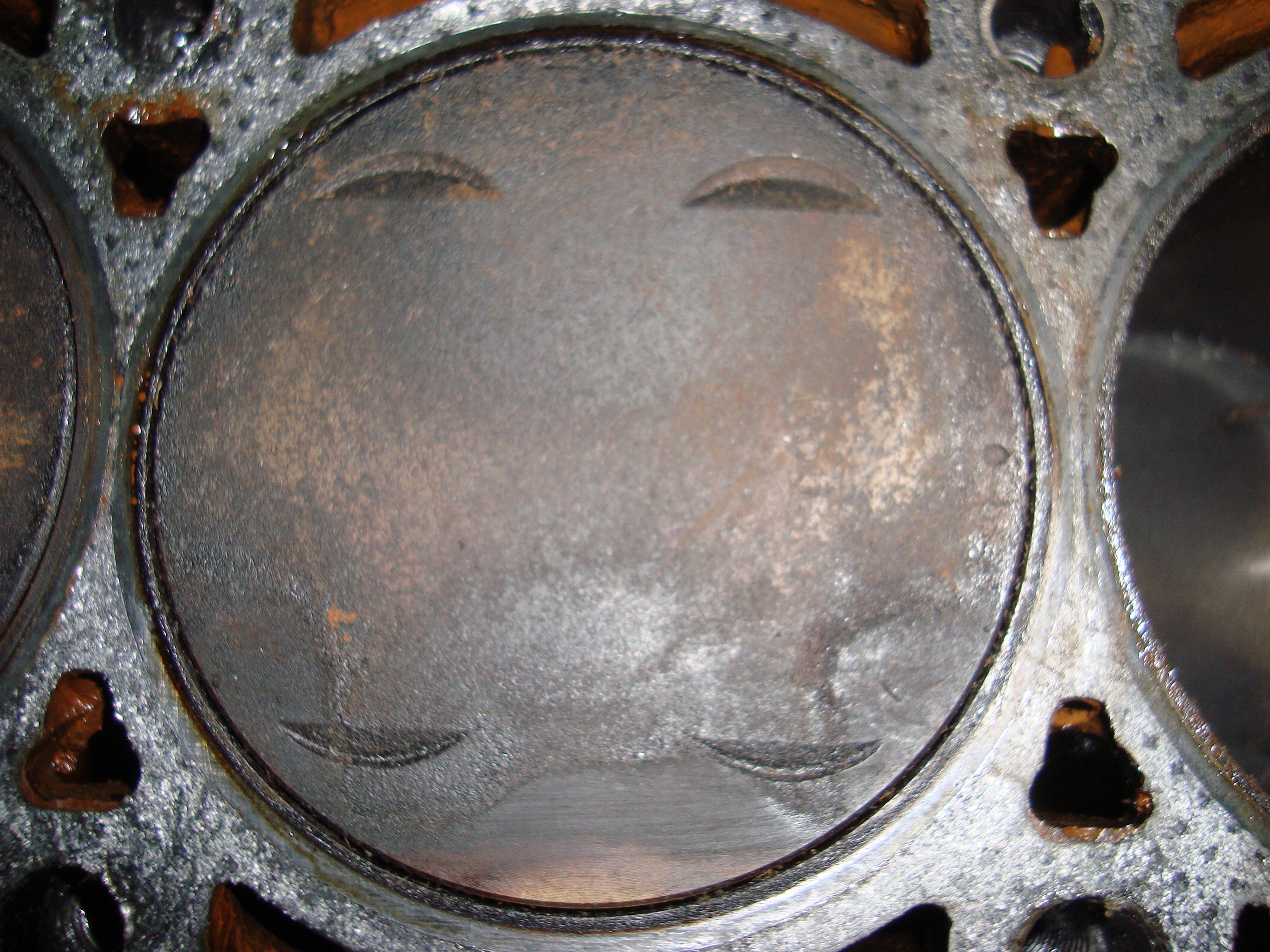 del bloque del motor todo parece correcto pero me llama la atencion los conductos del refrigerante porque parece que se han oxidado… eso suele salir si se usa agua dura, en lugar de usar anticongelante. se que hay limpiadores para el circuito de agua, le vendrian bien, y sino de todas formas cuando lo lleves a rectificar lo meten en una bañera de acido (pidelo por si no estuviera incluido) y te olvidas de problemas para toda la vida…