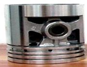 El pistón es un cilindro abierto por su base inferior, cerrado por en la superior y sujeto a la biela en su parte intermedia. El movimiento del pistón es hacia arriba y abajo en el interior del cilindro, comprime la mezcla, transmite la presión de la combustión al cigüeñal a través de la biela, fuerza la salida de los gases resultantes de la combustión en la carrera de escape y produce un vacío en el cilindro que “aspira” la mezcla en la carrera de aspiración.