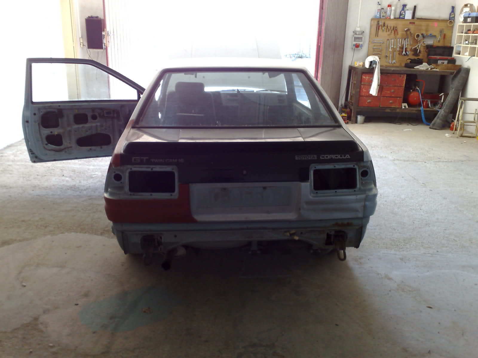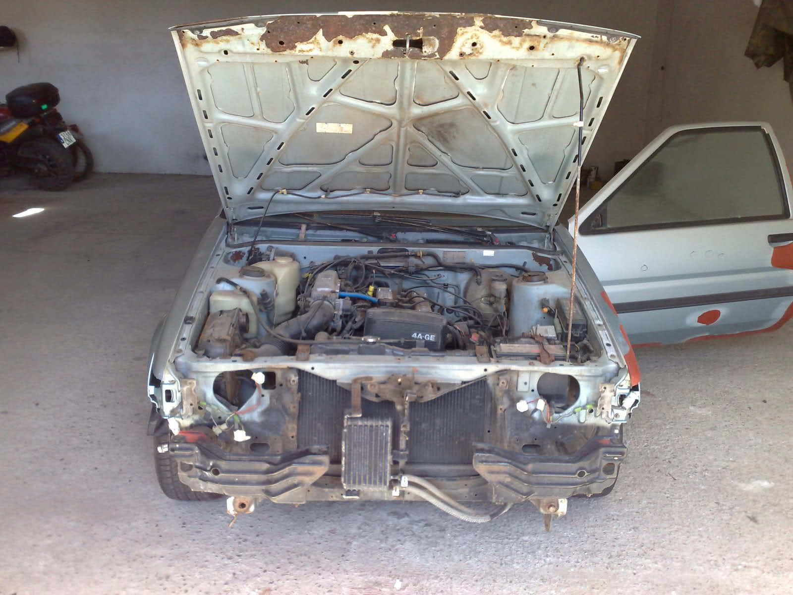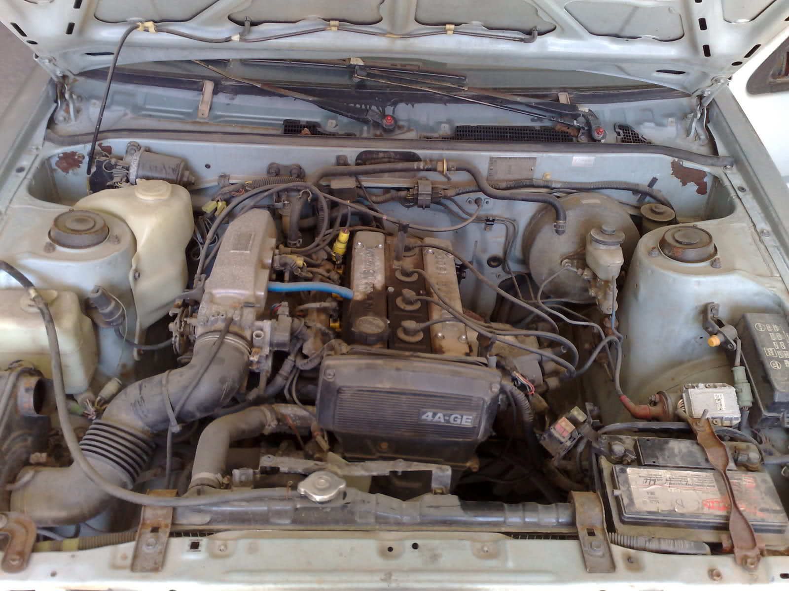 El coche es trasera, y el motor que as visto suelto es de un delantera (ae111) como bien as dicho, aunque no lo parezca, son practicamente iguales, de hecho es el mismo bloque motor, pero cambian algunas cosas como la culata, cuerpo de admision entre otras cosas, es la ultima evolucion de este motor y que montaron los ultimos corolla levin/trueno de 1998 (este es del 97).