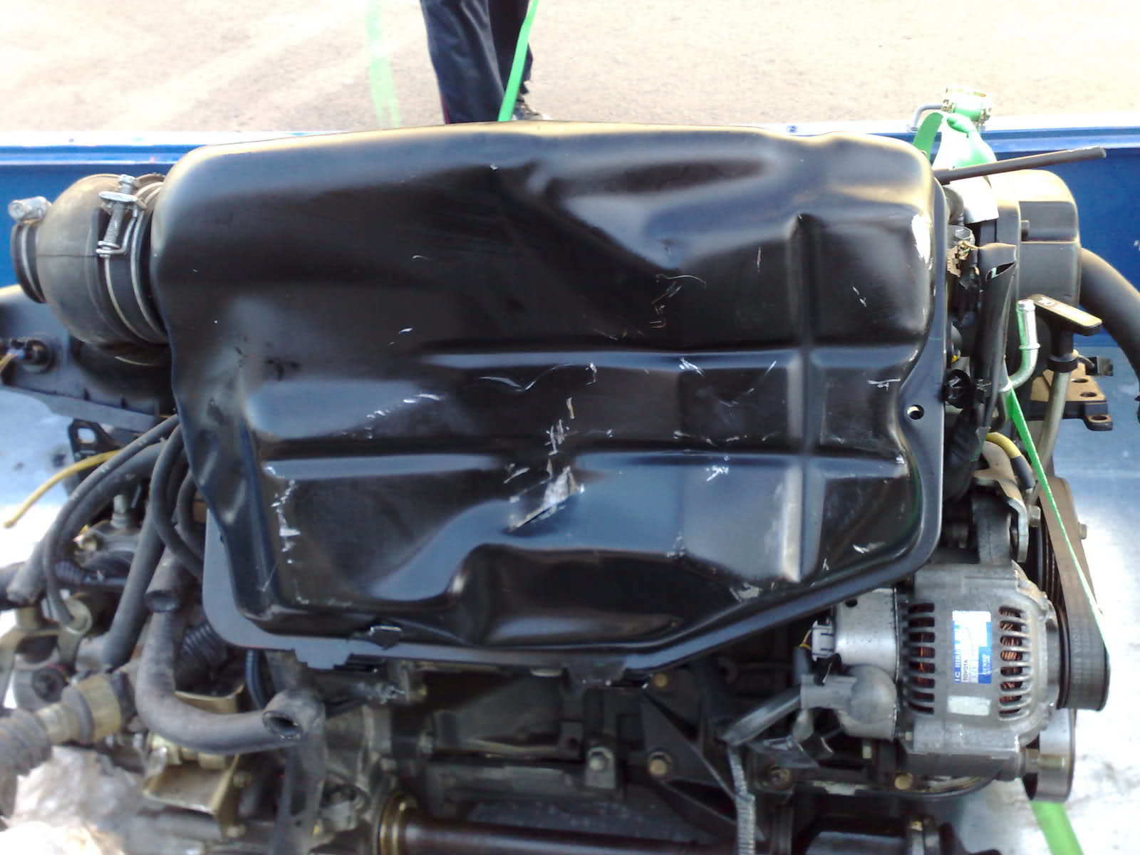 lo de el cableado es normal que lo envien asin lo de el delco te toca 1 nuevo por narices i lo de el carter pues no ahi mas remedio si no te kieres gastar dinero (ya que cambias el haceite) desmontas el carter i le das unos goles con maña i se pone en su sitio sin problemas un saludo otra coso dinos a kien le as pillado el motor para no pedir ninguno ejjeje
