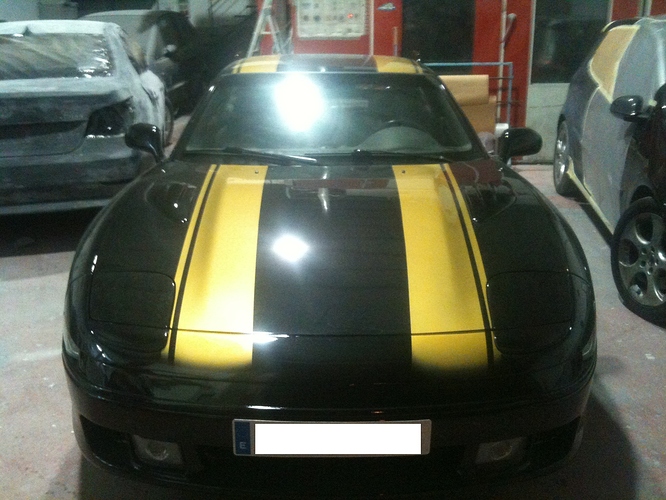 Aún tengo por aqui un rollo de vinilo gris plata para colocarsela al 3000 para ver como quedaba y pintarlo o no… aun tengo la duda, muy buena la solución del degradado de la ralla en el morro, asi no se ve el corte seco!!