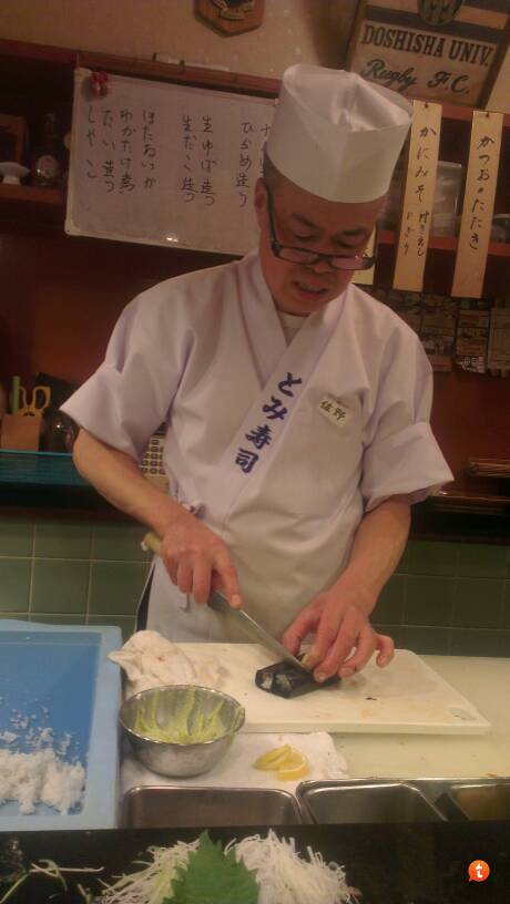 Cenando en el mejor sitio de sushi de Japón en Kyoto con el señor sanno-san