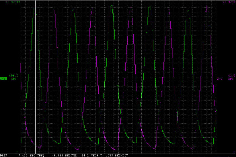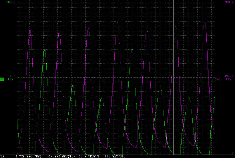 a diferencia de que con la maquina de compresion expecifica se mire la compresion por cada cara del rotor, es decir, el grafico que has puestos, un color corresponde a un rotor, y otro color al otro rotor, cada curva hacia arriba te marca la compresion de cada cara del rotor. ya que puede haber dos sellos bien y uno de ellos mal… con lo cual ay ya hay una perdida de compresion…